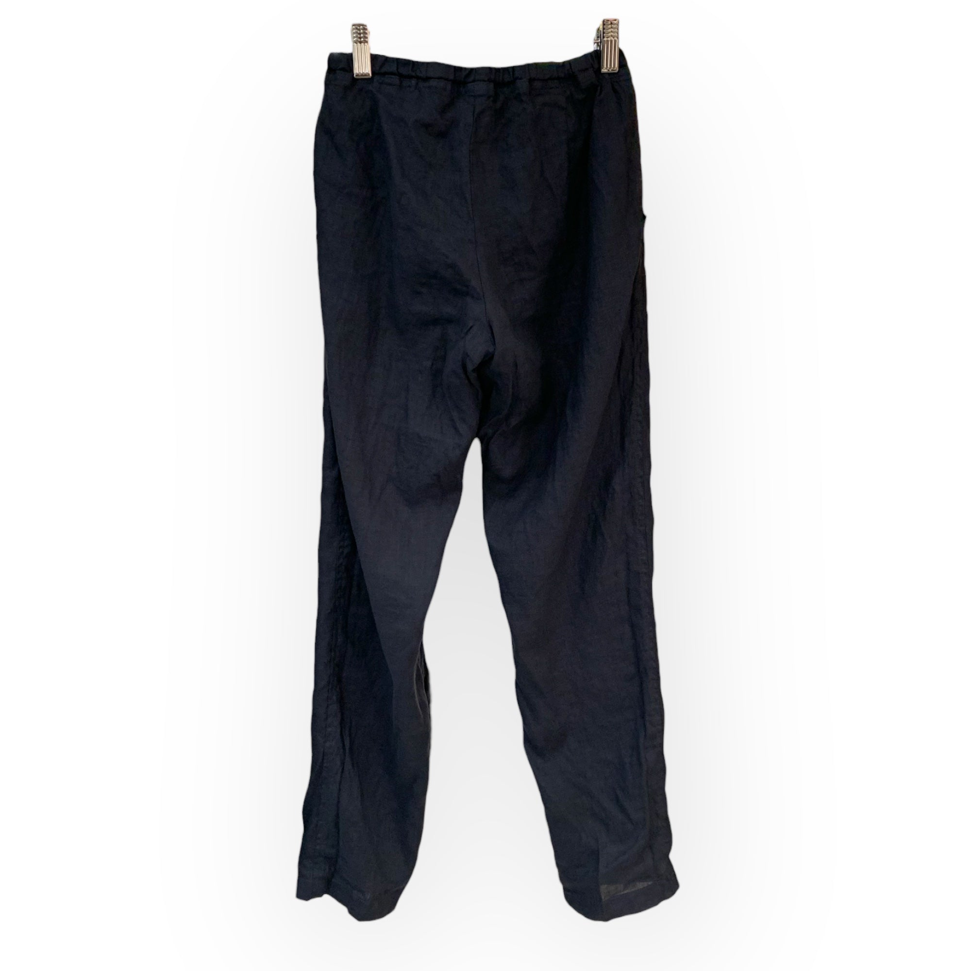 Classic linen pant with a tapered leg and regular rise with a narrow elastic waistband. Hampton features a faux drawstring and side seam pockets. Wear cuffed as a capri, or uncuffed as an ankle-length pant.