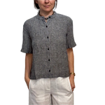 Textural organic linen gives softness to this boxy button-up shirt with a nuanced color that makes each garment unique.
