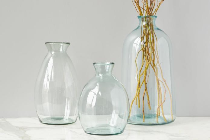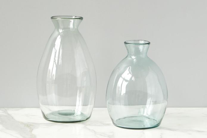 Our artisanal glass vases are made by European artisans, each mouth blown into molds from recycled glass sourced from around Europe. Stunning on their own, in pairs, or in a set of three, the ability to mix and match sizes and colors adds interest to the display, but the free form of the vessel ensures it is perfect as a singular decorative accent.