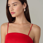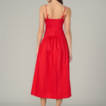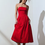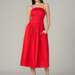 A maxi dress with a seamed bodice, subtle dropped waist and adjustable tie straps.