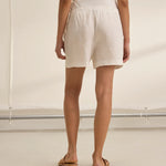 Crafted from lightweight woven linen, these shorts offer a breathable feel with a relaxed fit. A drawstring elastic waist ensures comfort, while slash pockets add everyday practicality.