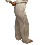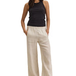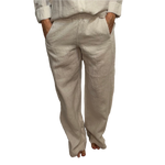 Crafted from lightweight woven linen, these full-length pants offer an easy, relaxed fit. The elastic waist ensures comfort, while the wide-leg design creates a flattering, effortless silhouette. Slash pockets add practicality, making these perfect for warm weather or relaxed styling.