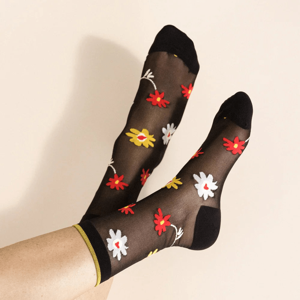 Because nothing sings spring more than a floral bouquet, this sheer pair has a sweet mix of different flowers floating around. Slip yours on for field frolics and park strolls alike. What a fresh pick!