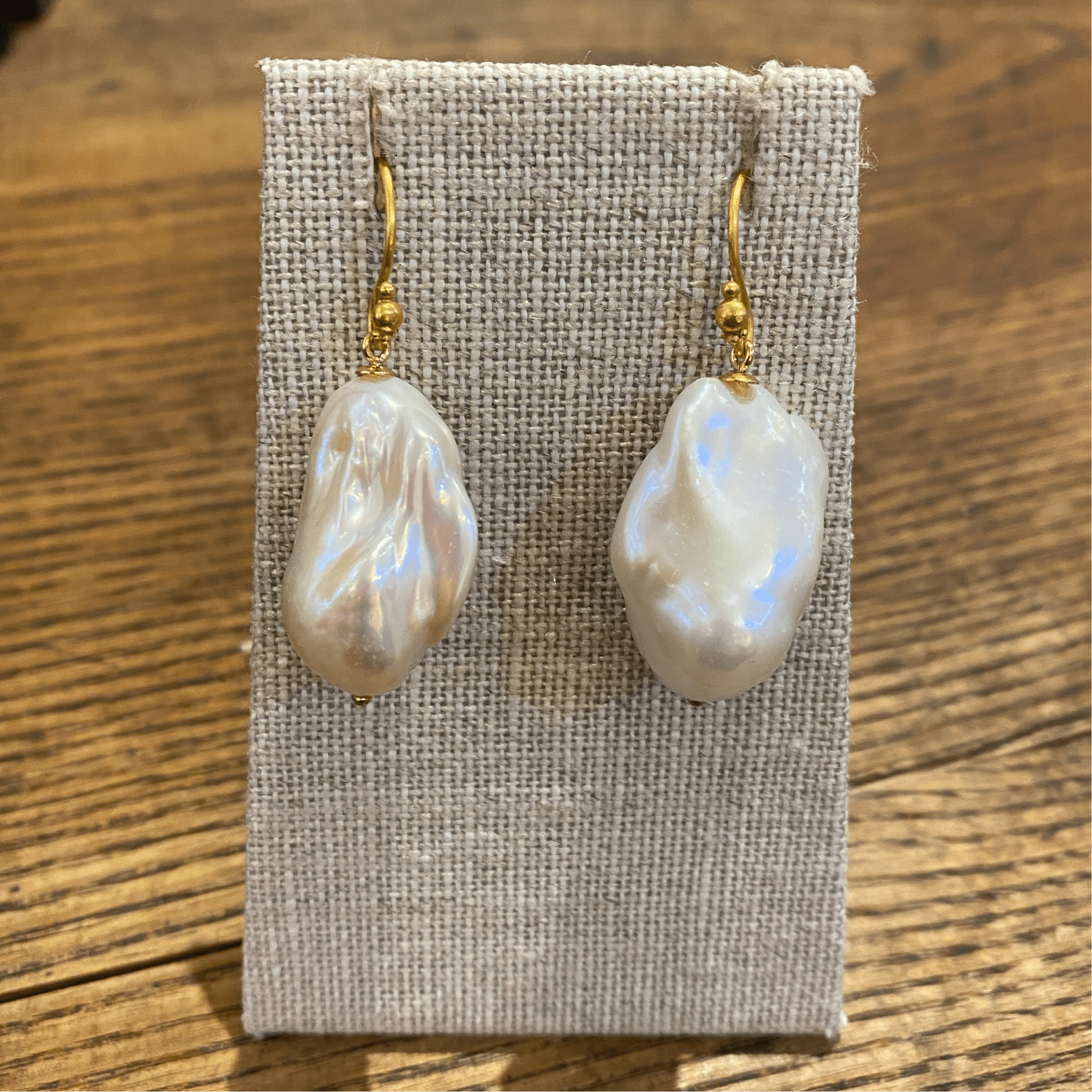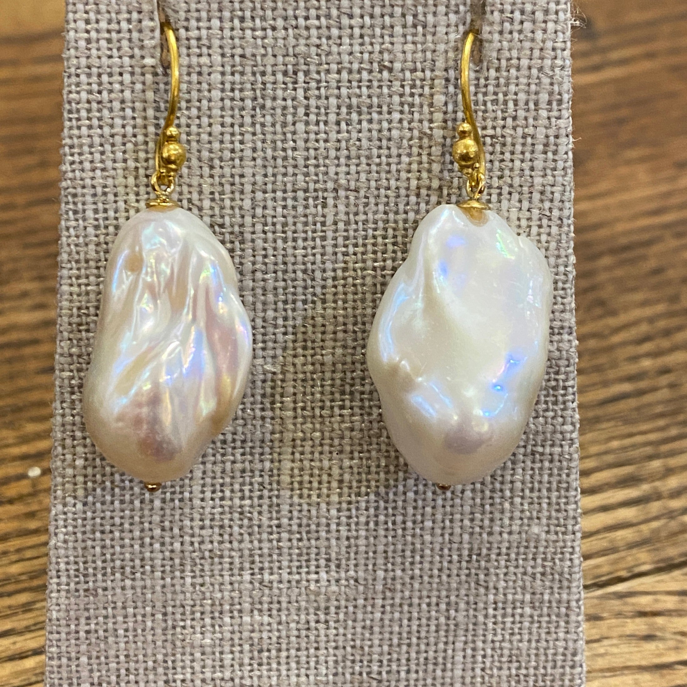 Large white baroque freshwater pearl on with 14K & 22K Gold S-Hook.