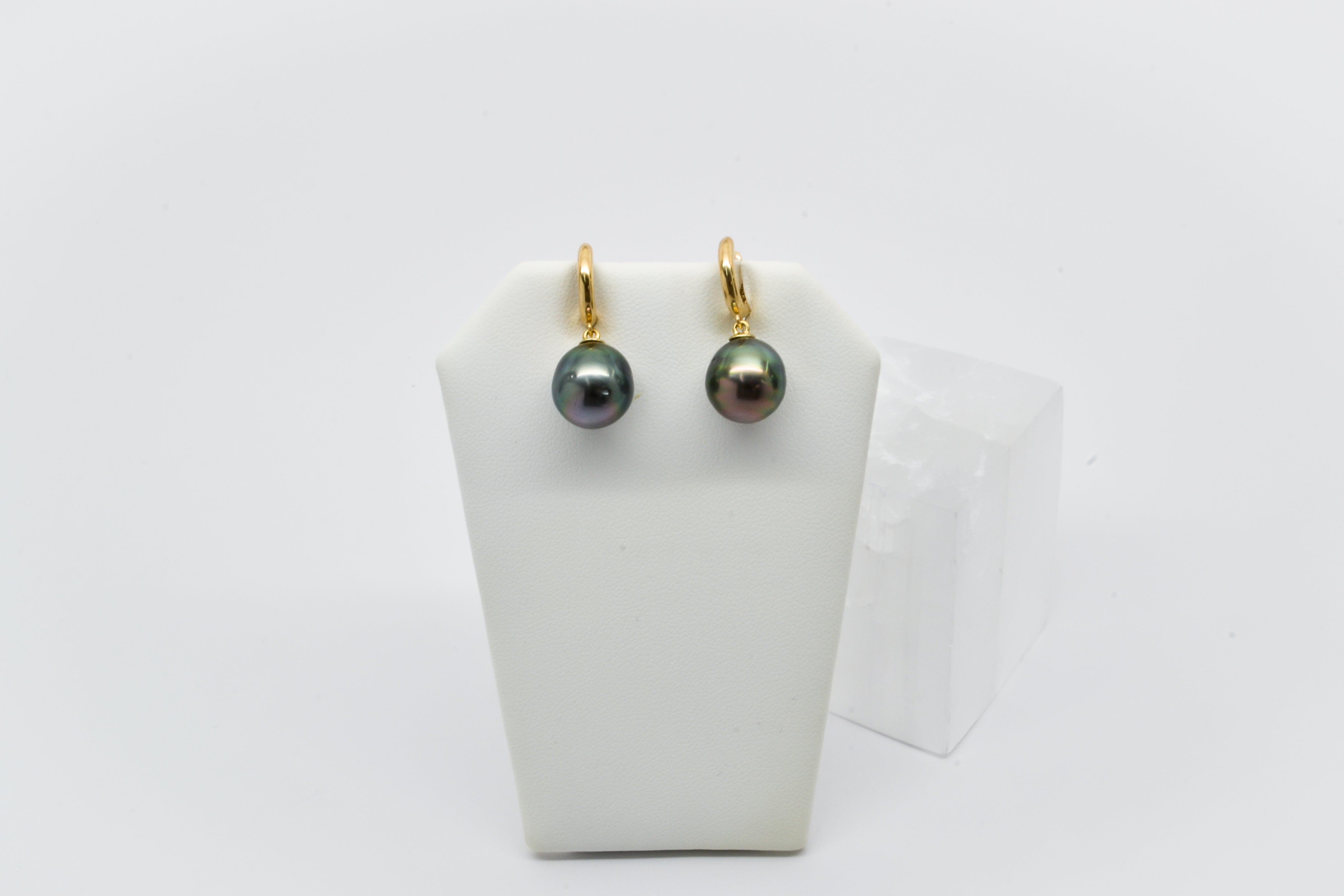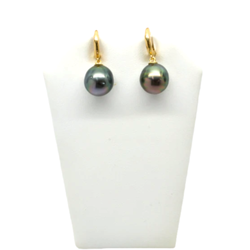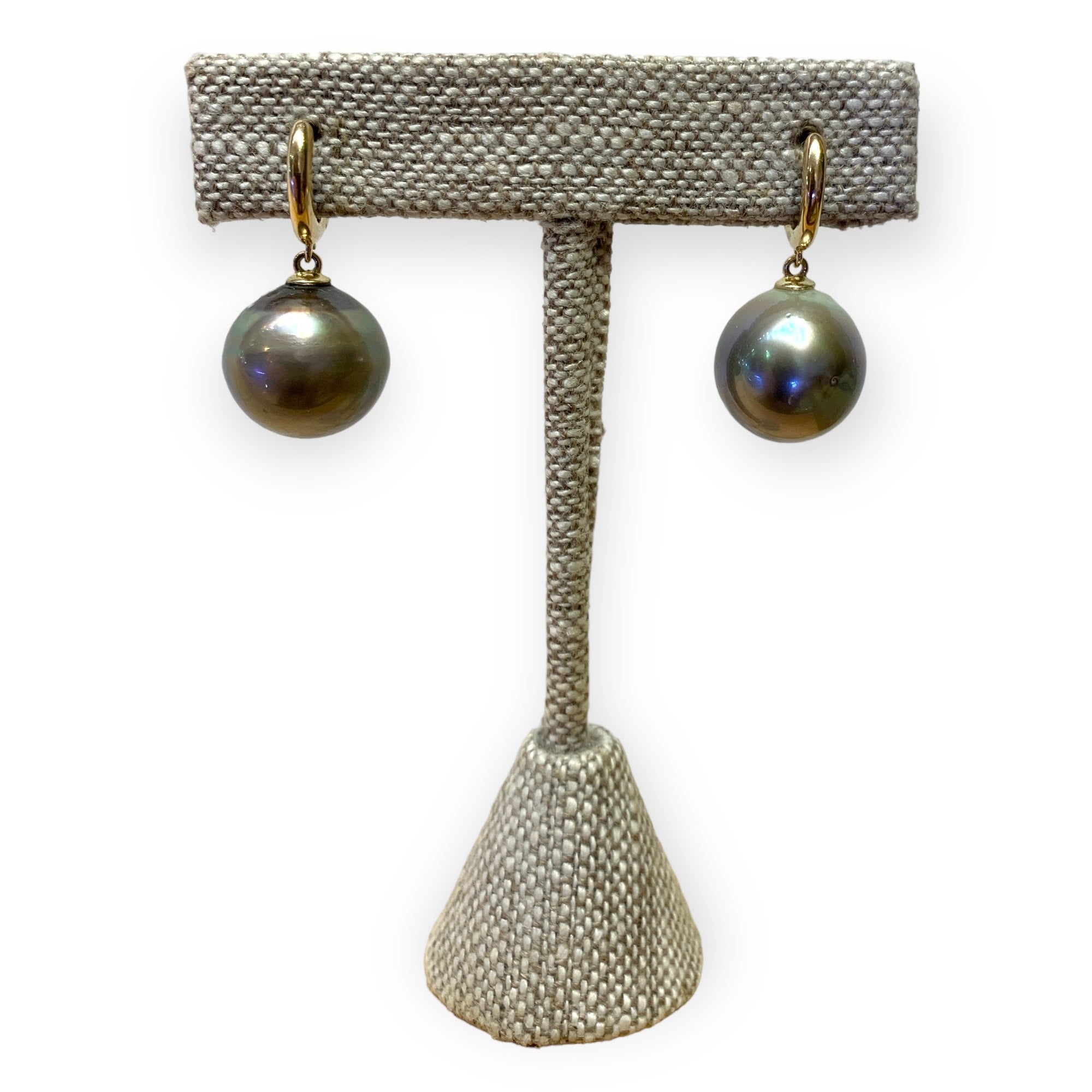 Genuine Tahitian pearl (pearl and color may vary) on our top selling 14k gold huggy mount.