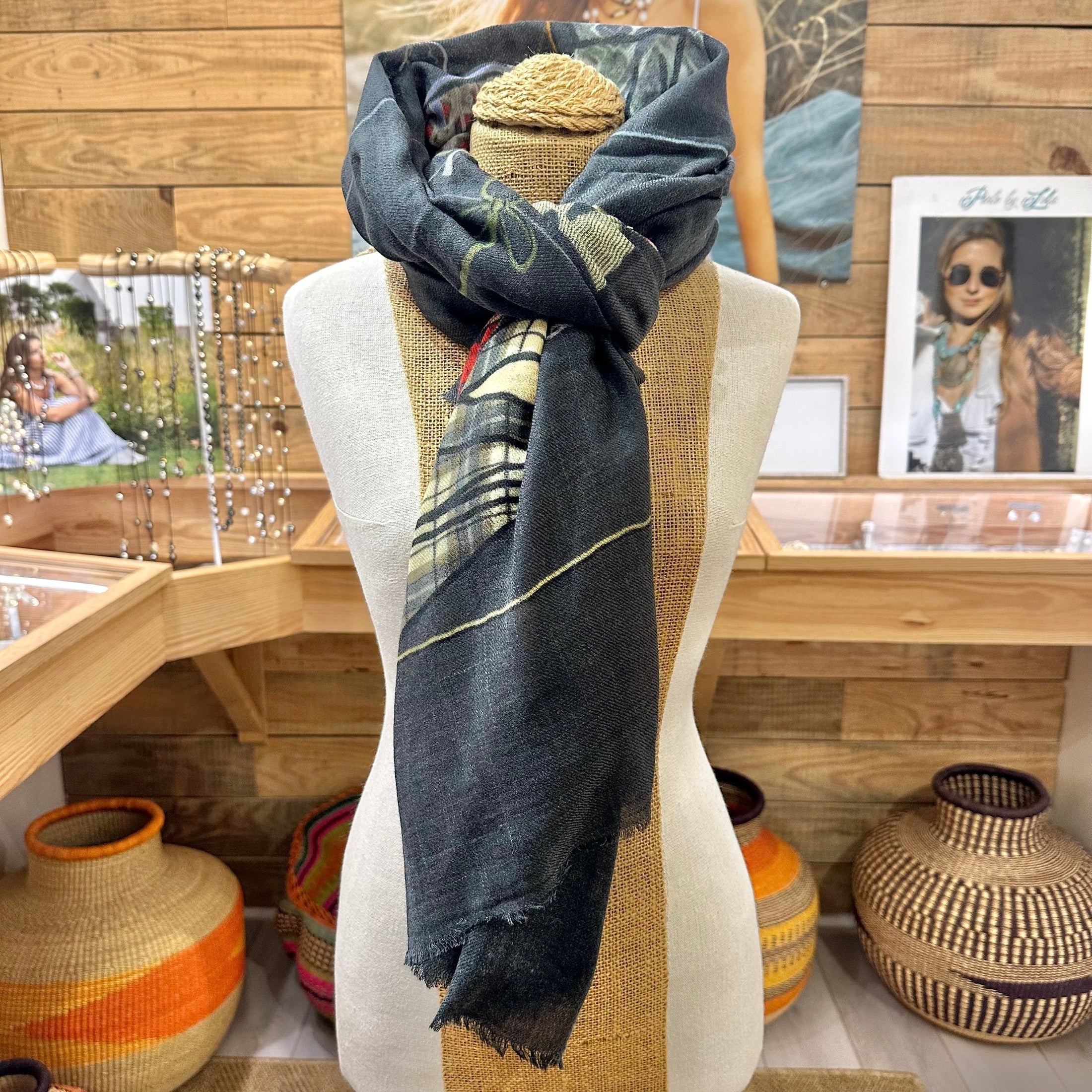 Elevate your style with our wool and silk blend scarf, measuring 100 x 200 cm. The softness of wool and the subtle sheen of silk create a refined and warm accessory, ideal for a touch of understated sophistication. Dimensions: 100 x 200 cm Composition: 90% wool / 10% silk Care instructions: Dry clean