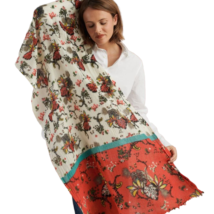 Crafted with care, our wool scarf stands out with its hand-embroidered details, adding a touch of elegance to your style. Dimensions: 80 x 190 cm Composition: 100% wool Care:: Dry cleaning