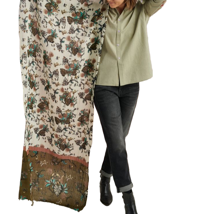 Crafted with care, our wool scarf stands out with its hand-embroidered details, adding a touch of elegance to your style. Dimensions: 80 x 190 cm Composition: 100% wool Care:: Dry cleaning
