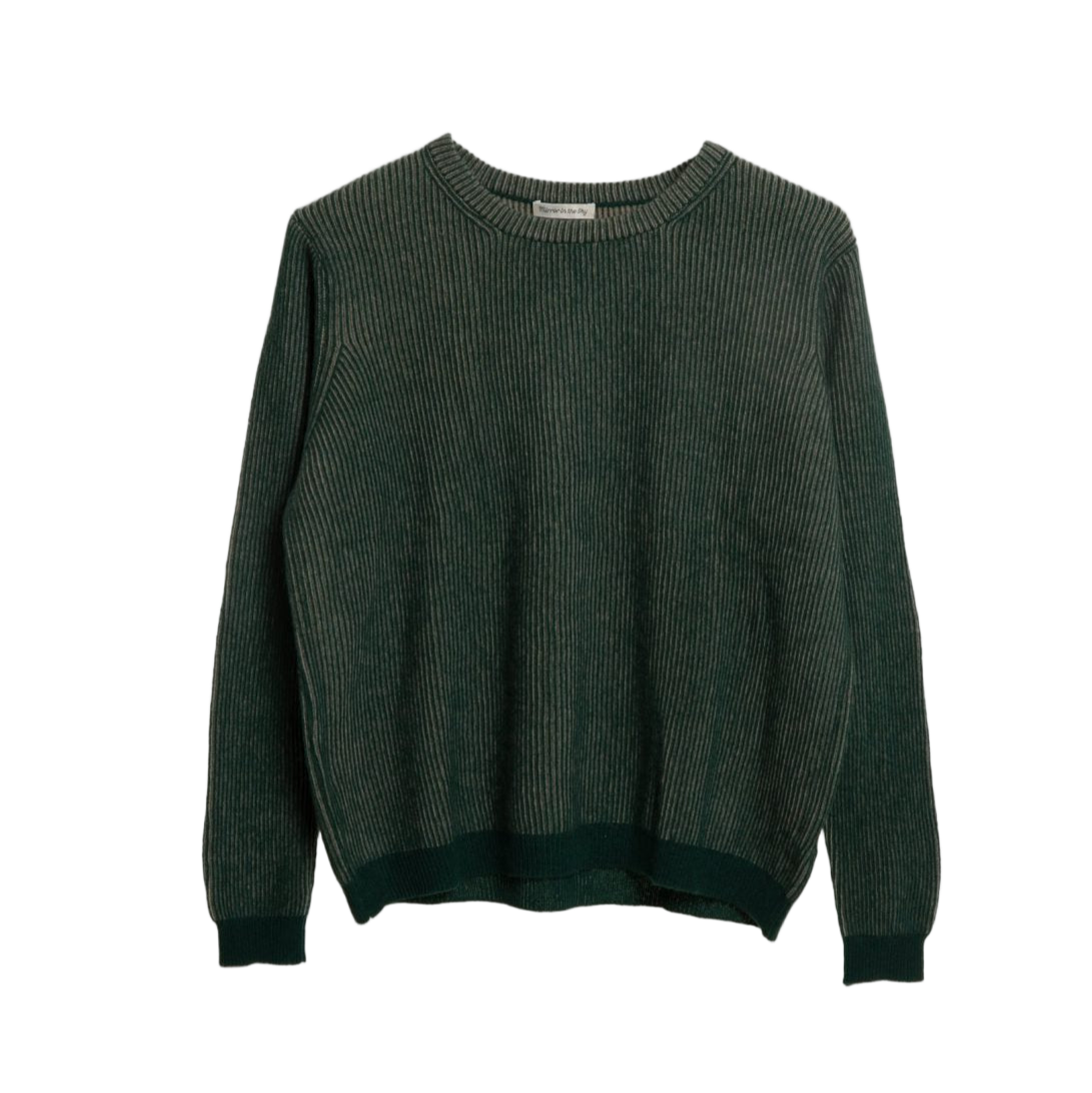 MITS - Ribbed Two-Tone Round Neck Sweater | Conifer and Patina