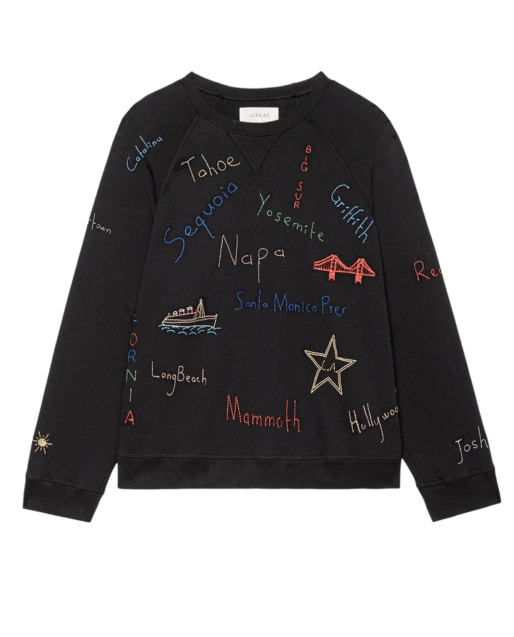 The Slouch Sweatshirt. is inspired by a treasured vintage find. This wear-with-everything piece has extra slouch, a straight shape, and a fuller sleeve opening than The College Sweatshirt. Made locally in Los Angeles with a special embroidered daisy technique, our process ensures beauty and uniqueness—no two pieces are alike.