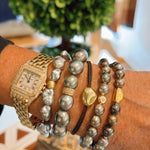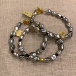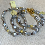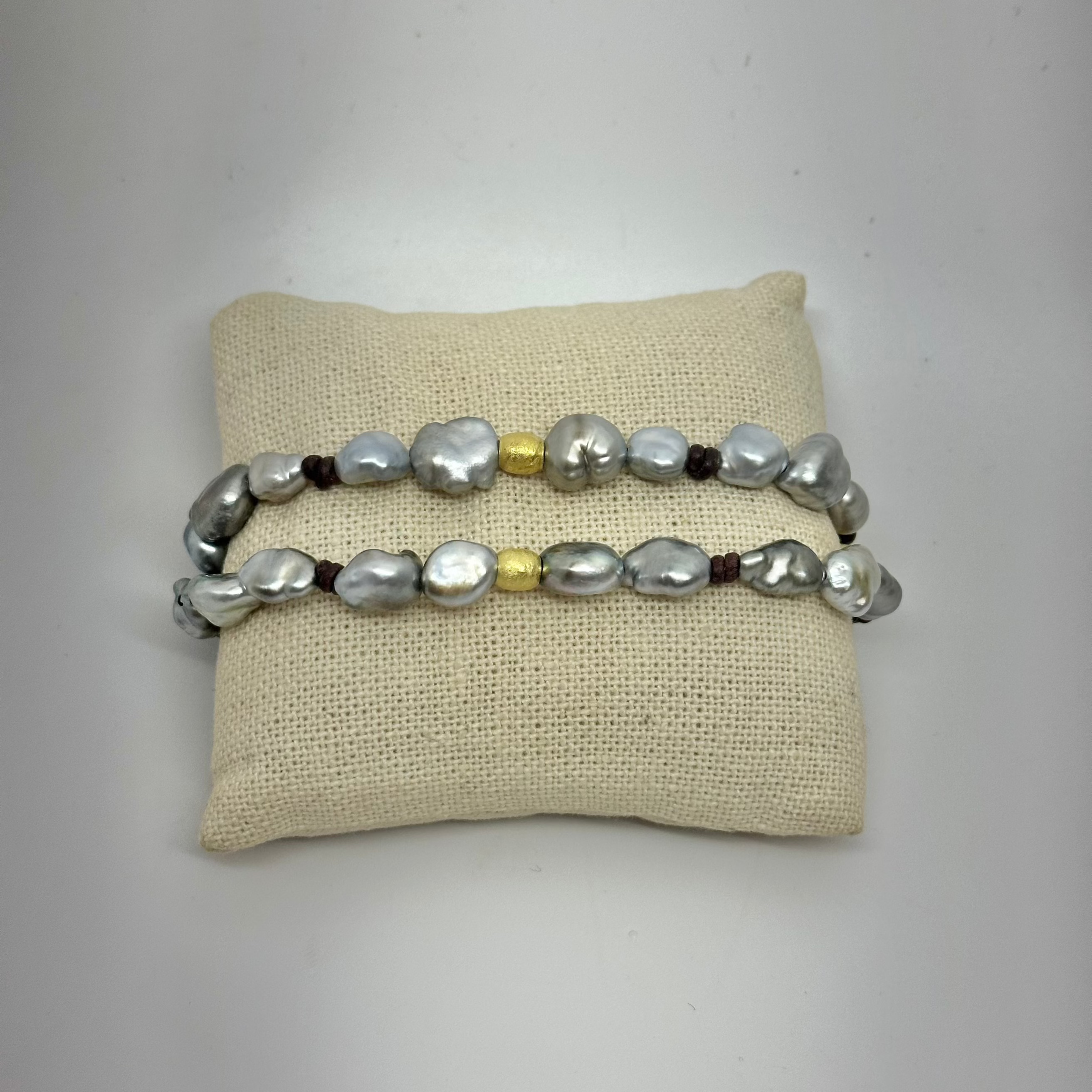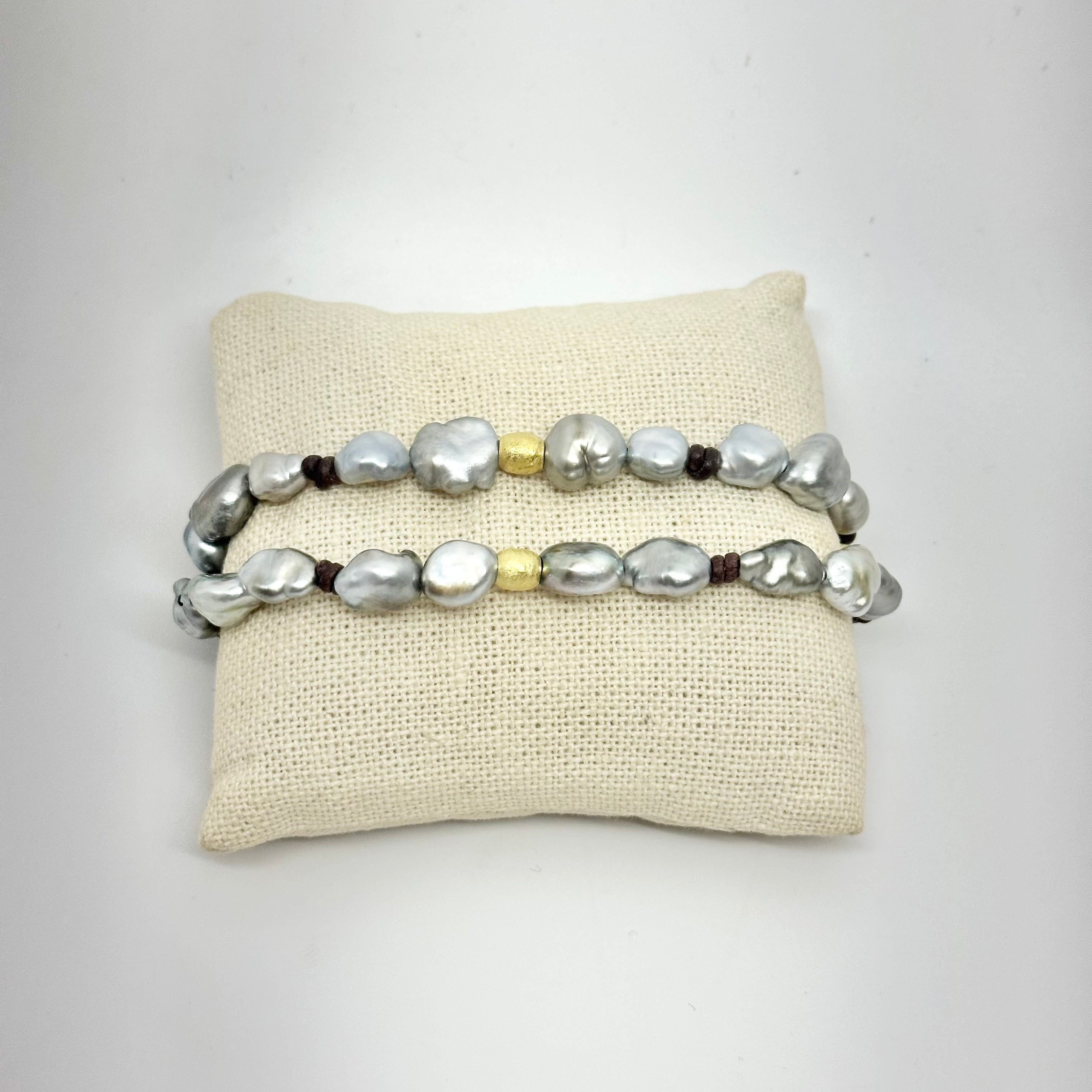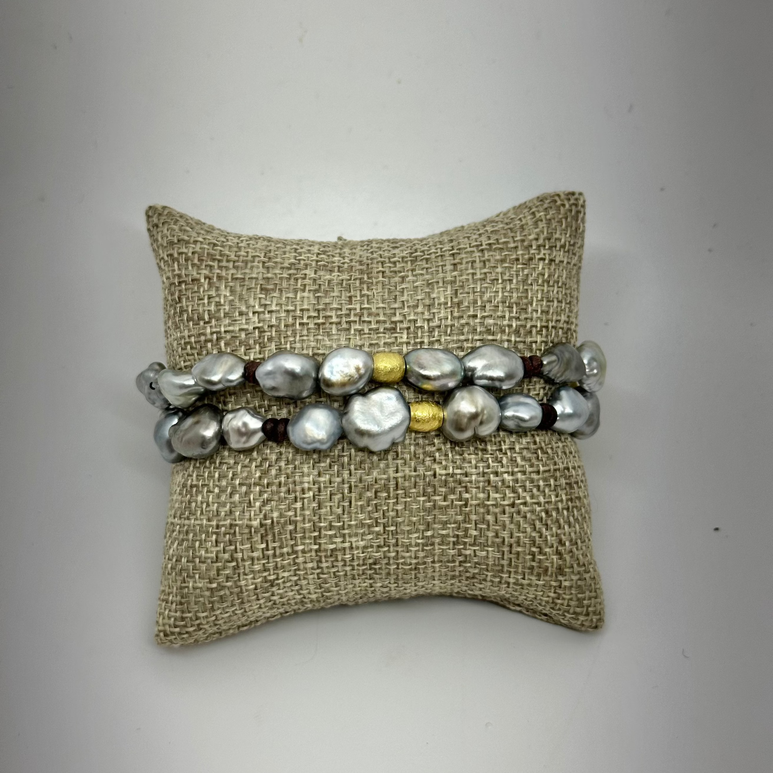 Keshi Pearls with an 18K Gold Rondell on leather with lobster clasp.