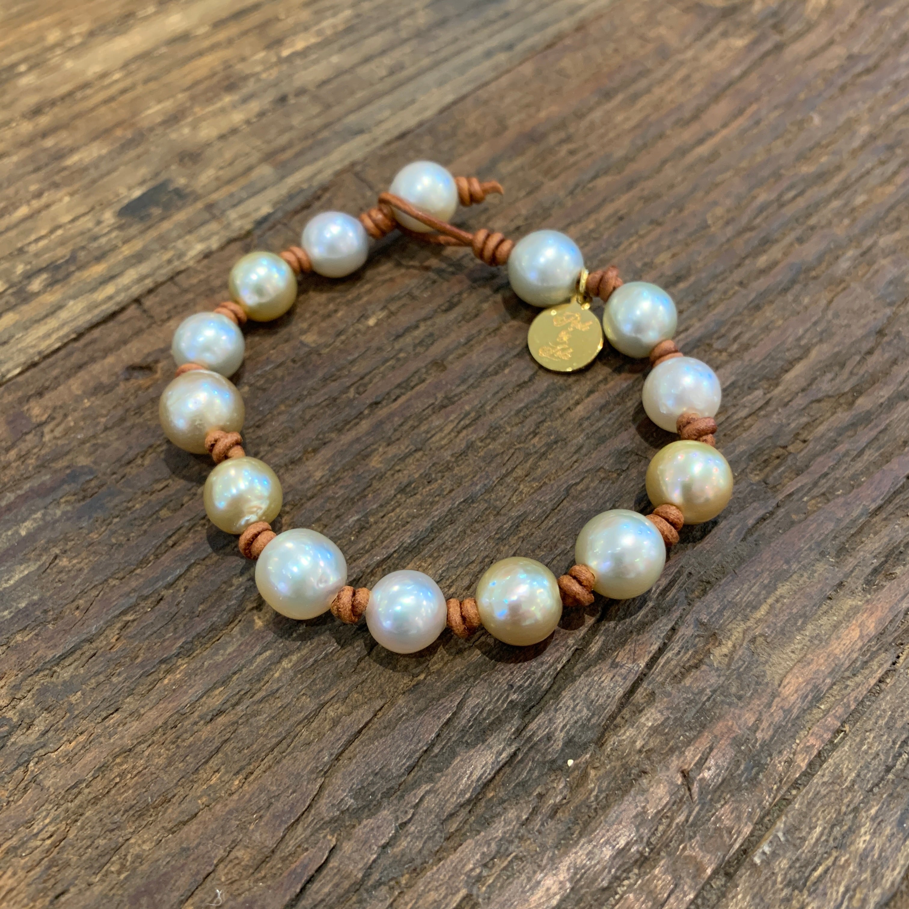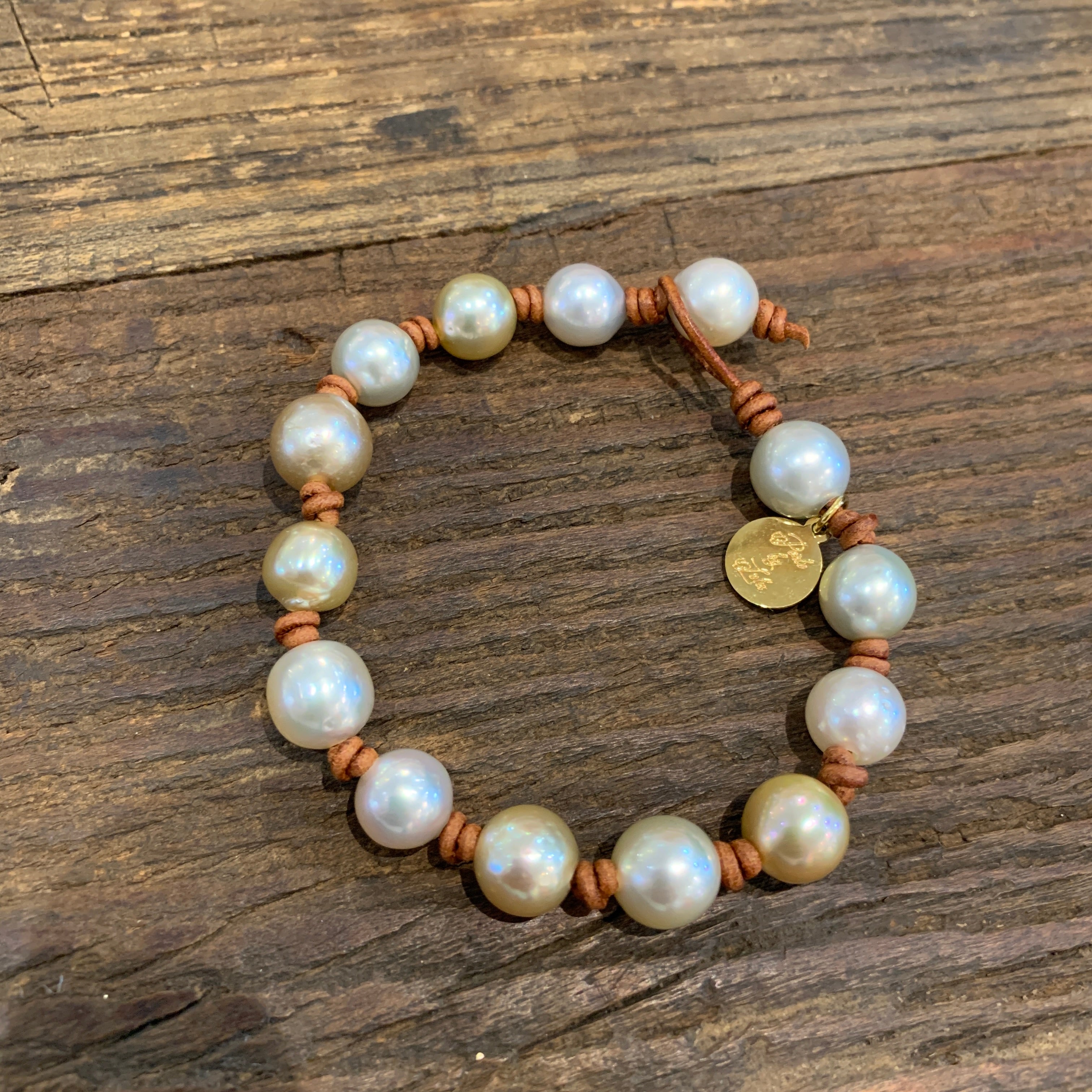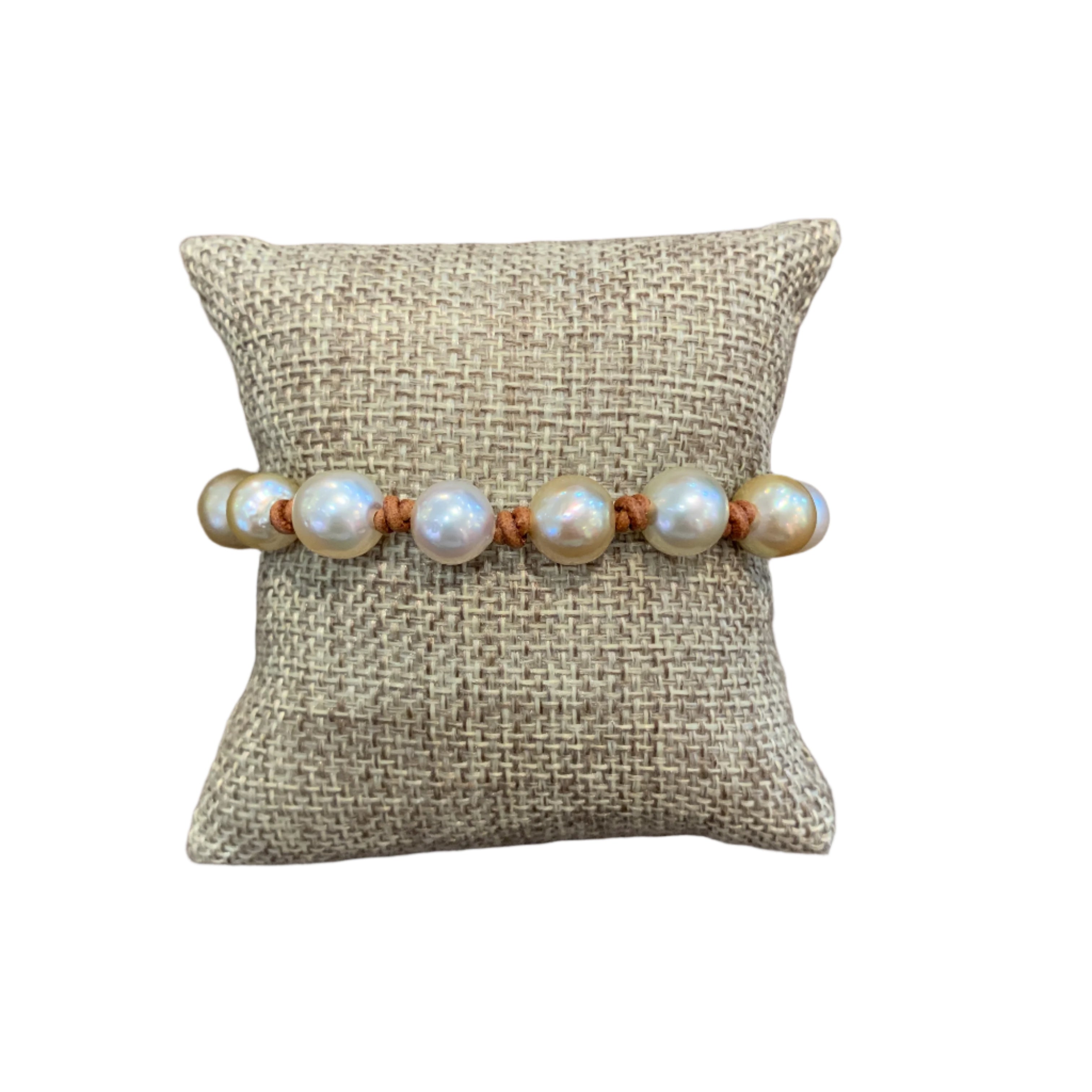South Sea Pearls w/ Knots Bracelet | Tan | 7.5-8"