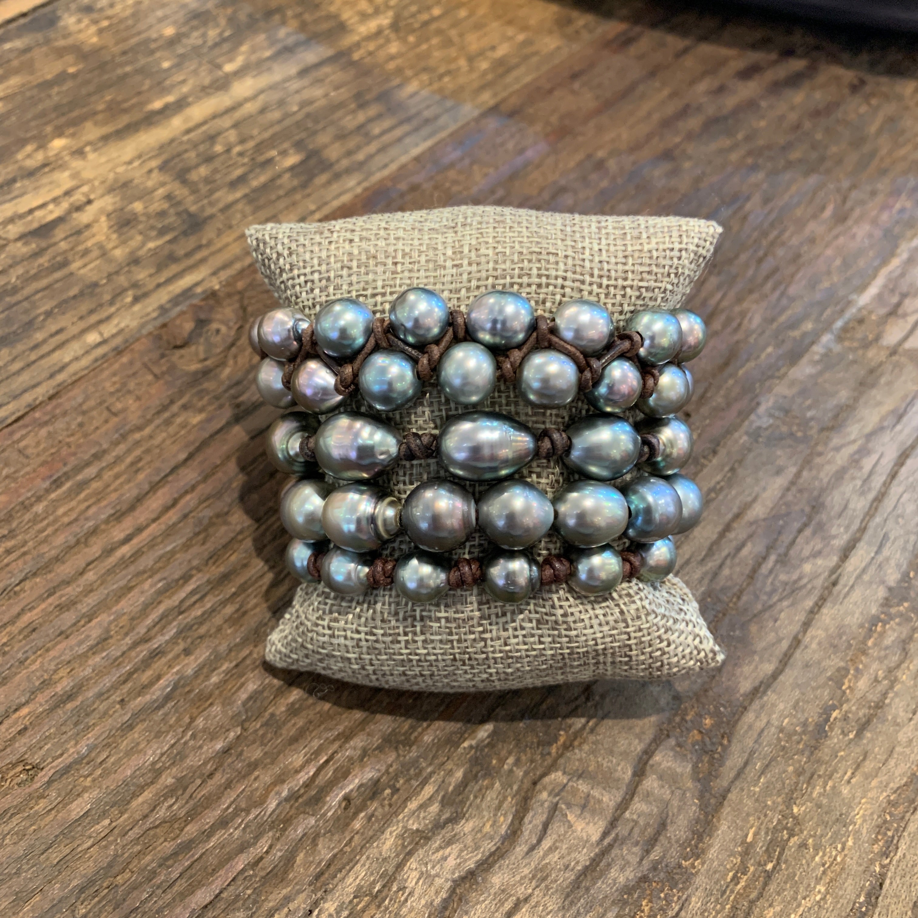 Bracelet with Tahitian Pearls on Dark Brown premium leather.