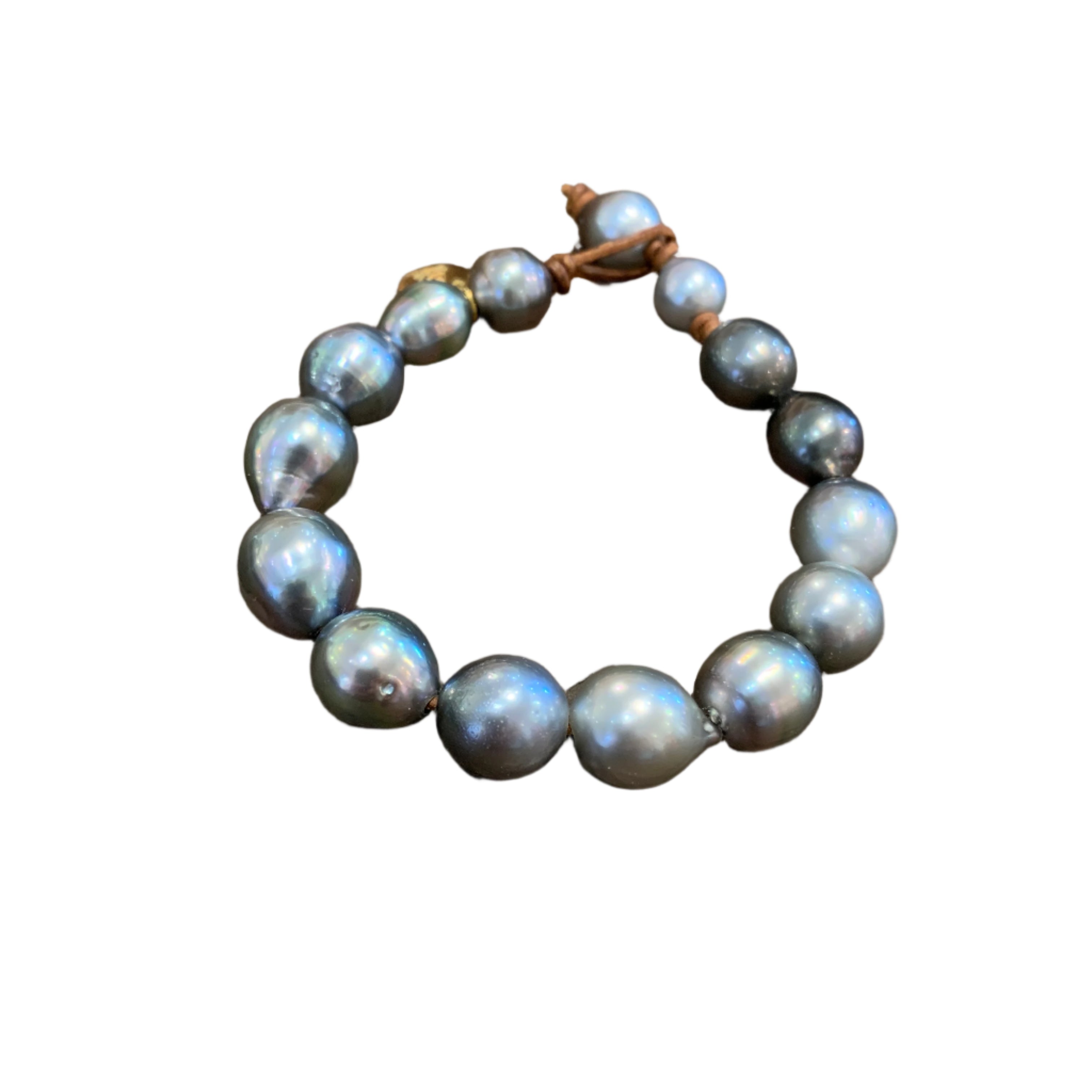 Bracelet with Tahitian Pearls on Tan premium leather.