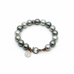 Tahitian Pearl Bracelet with Silver Pave Diamond Roundel & Clasp | 7.5”