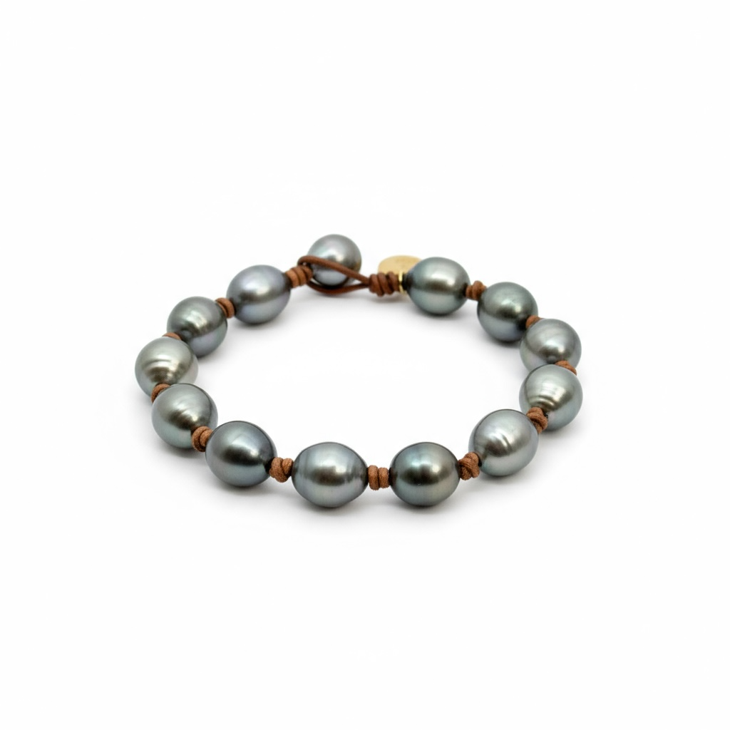This refined bracelet features authentic Tahitian pearls anchored by elegant knots on sumptuous tan leather. Designed for effortless sophistication, it seamlessly bridges casual and formal settings, making it the perfect everyday companion. The7.5" sizing provides an ideal fit, while the combination of lustrous pearls and premium craftsmanship creates a piece that elevates any ensemble with quiet, enduring elegance.