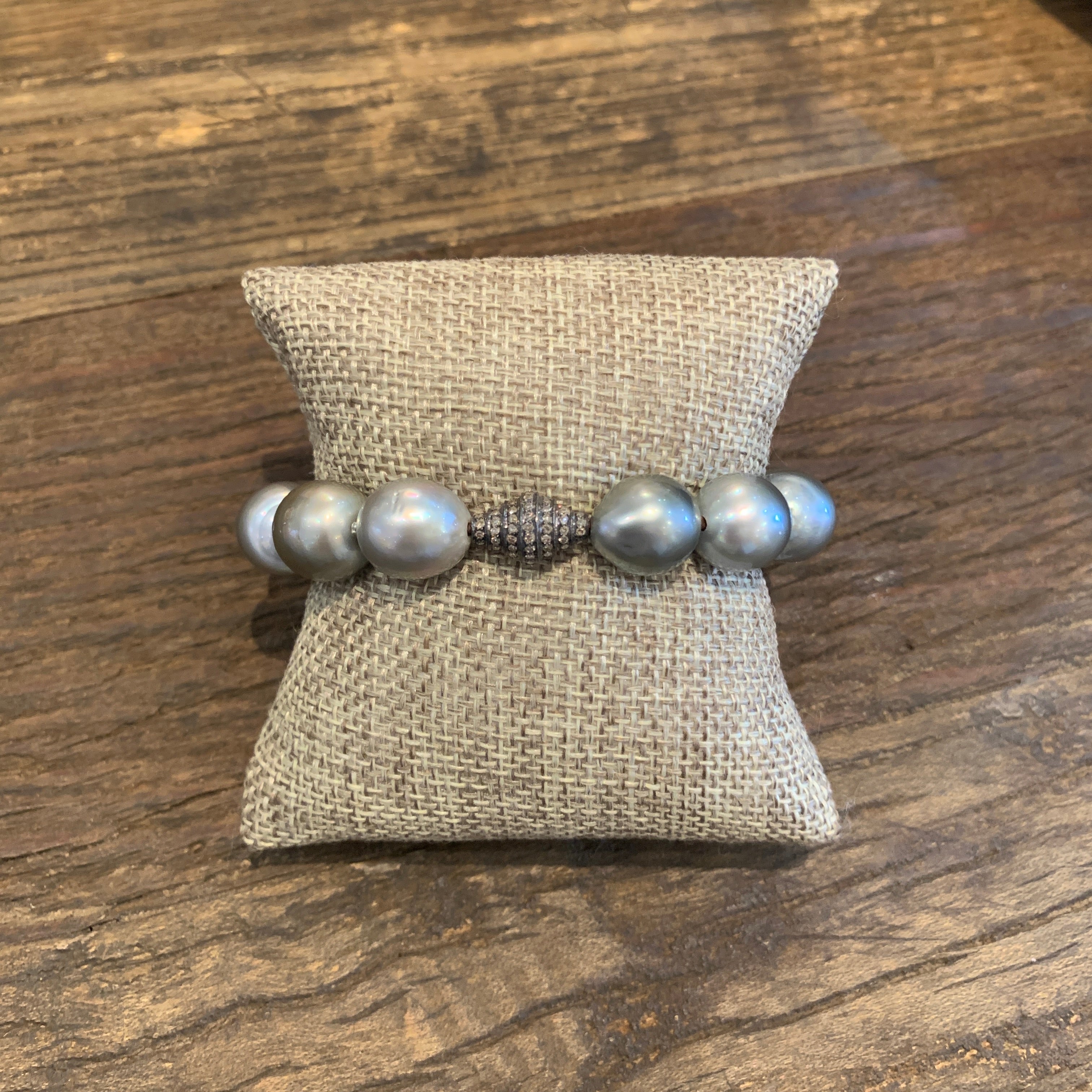 Tahitian Pearls w/ Silver Diamond Finding Bracelet | 8"
