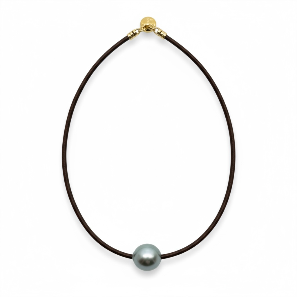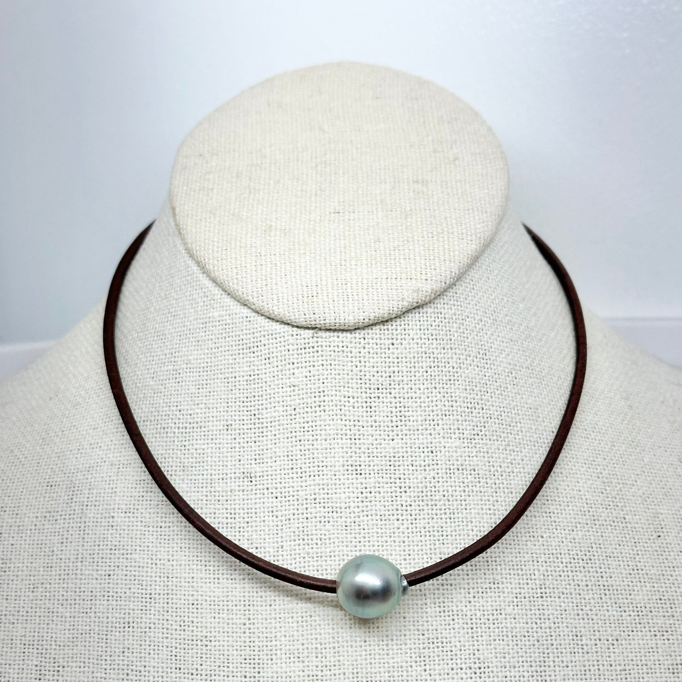 Single Tahitian Pearl on premium Dark Brown Leather.