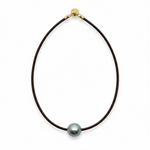 Single Tahitian Pearl on Leather Choker | 15" or 16"