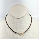 Large South Sea Pearl on Stitched Leather Choker | 15"
