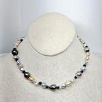 A mixture of Keishi, South Sea, and Tahitian pearls strung on dark brown leather.