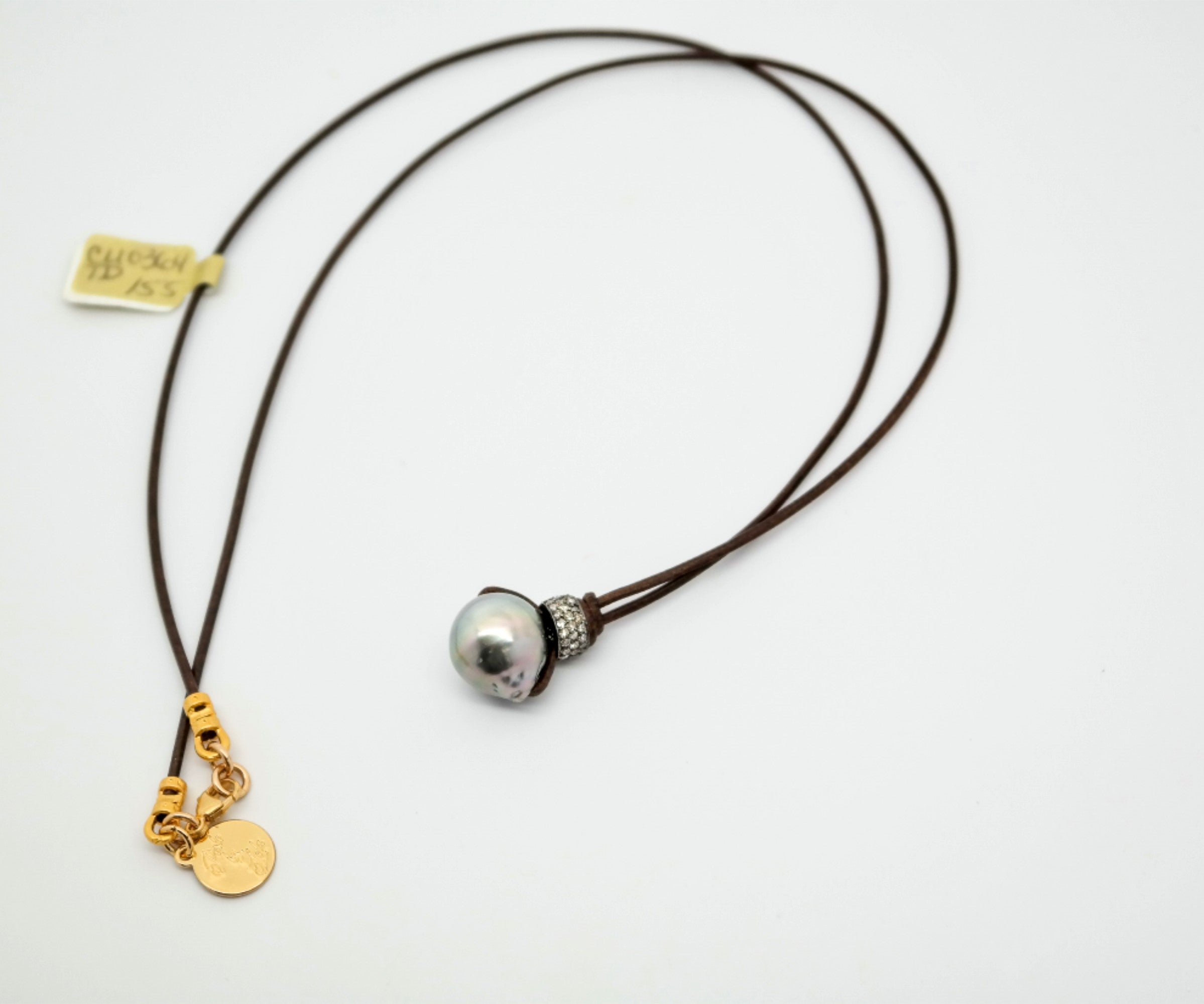- Tahitian/ dark brown/ diamond and 18k gold roundels