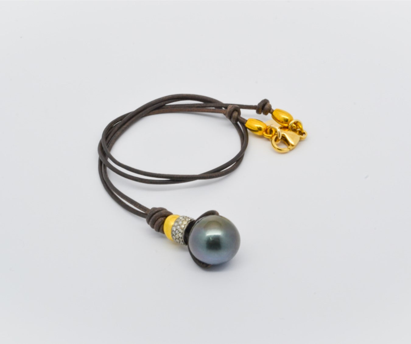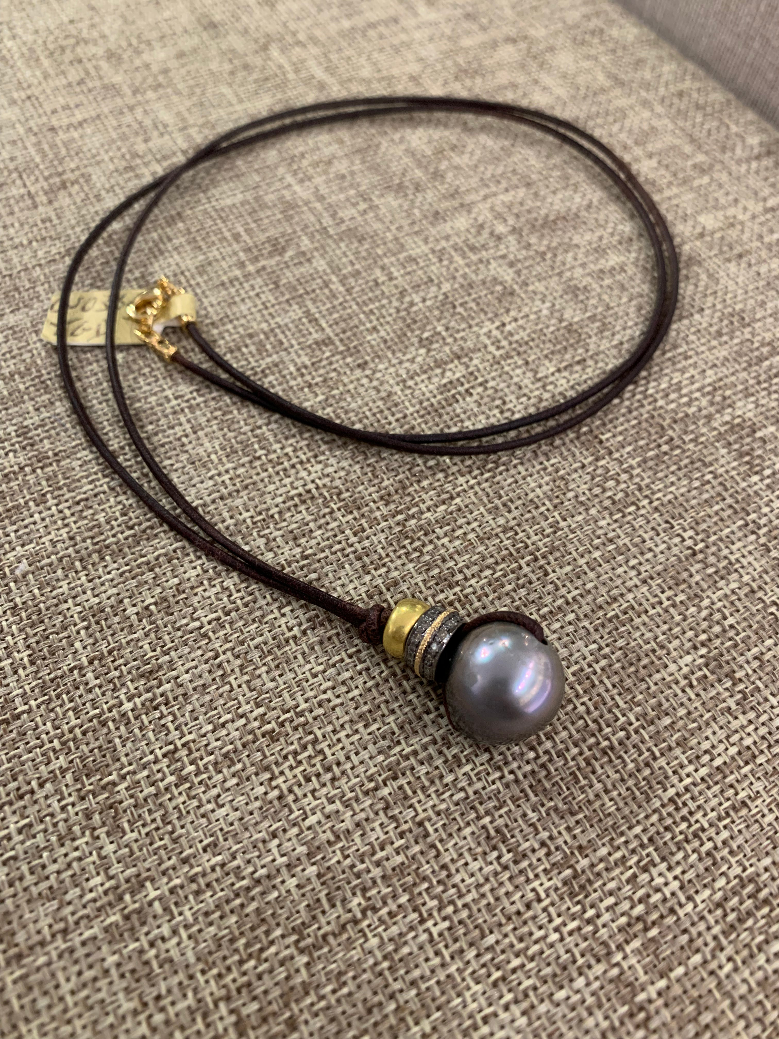 - Tahitian/ dark brown/ diamond roundel w/ gold & 18k gold roundel