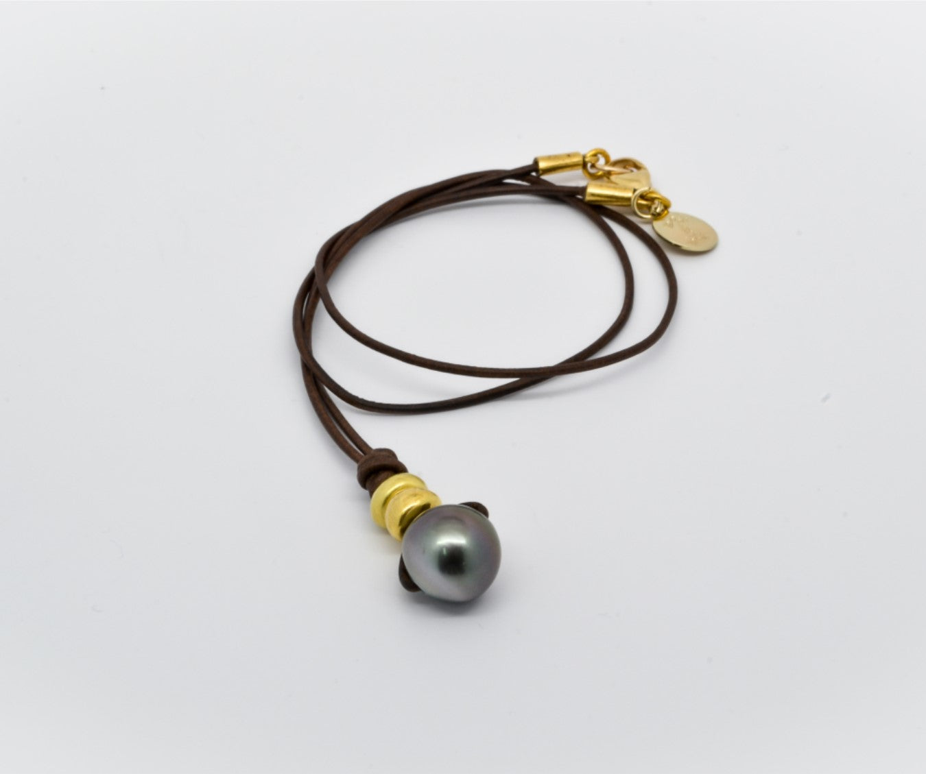 - Tahitian/ dark brown/ 1 large 18k gold roundel