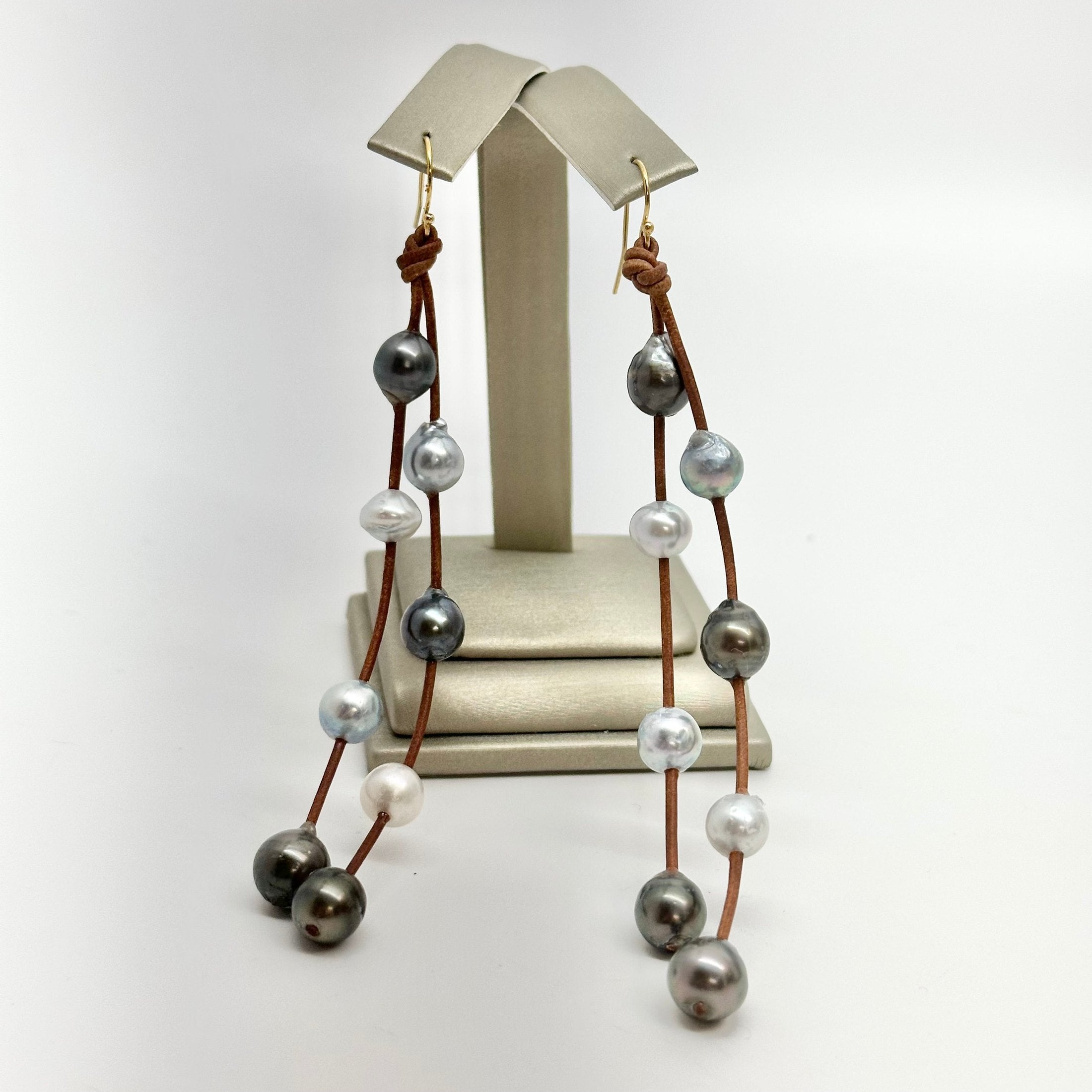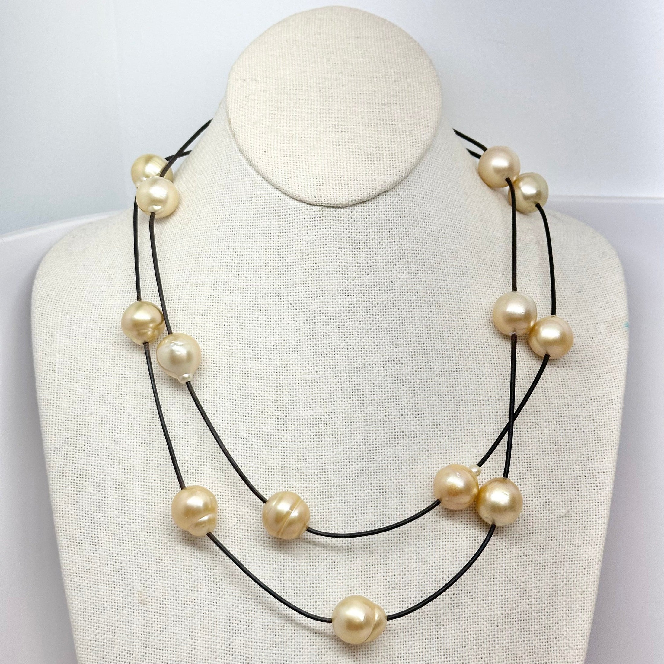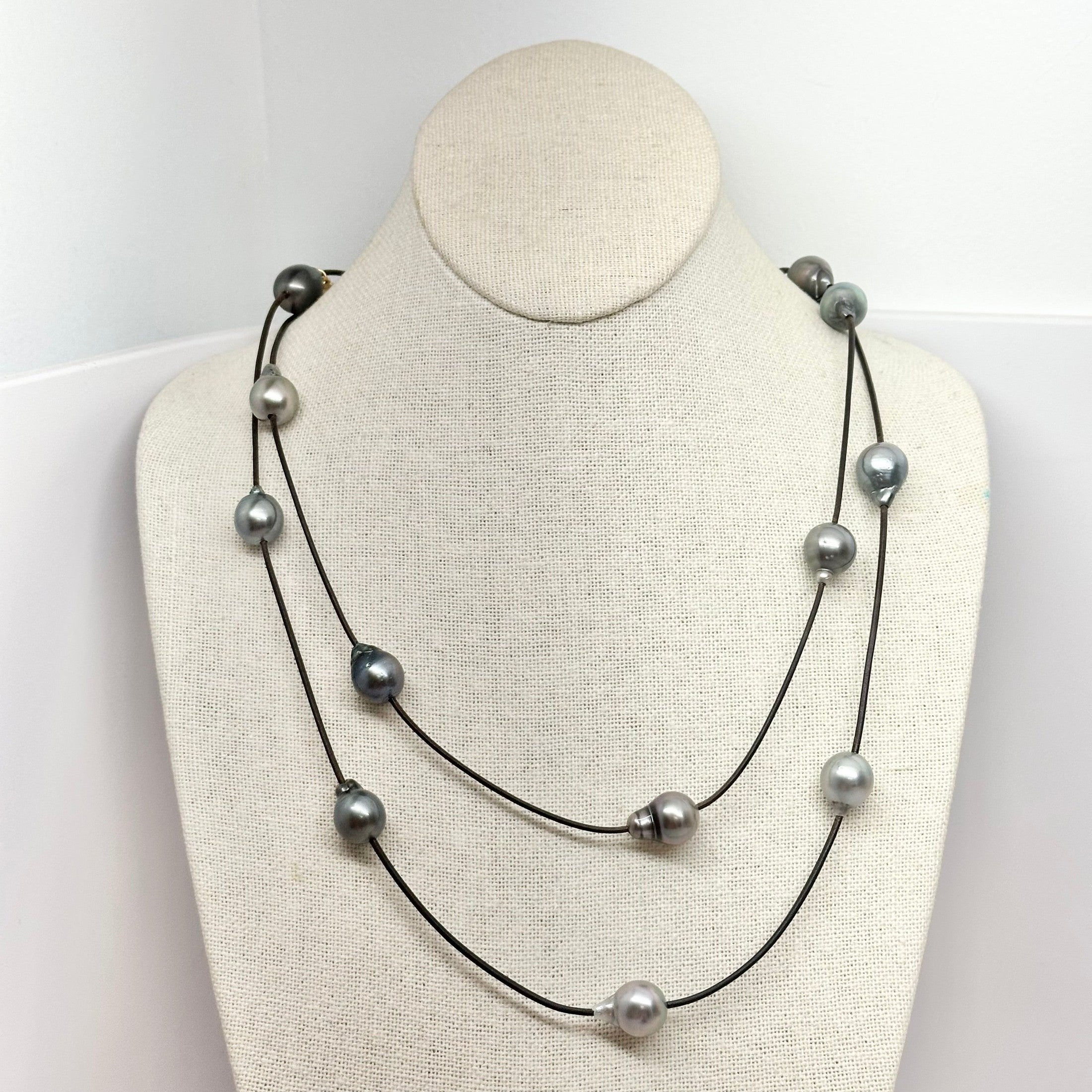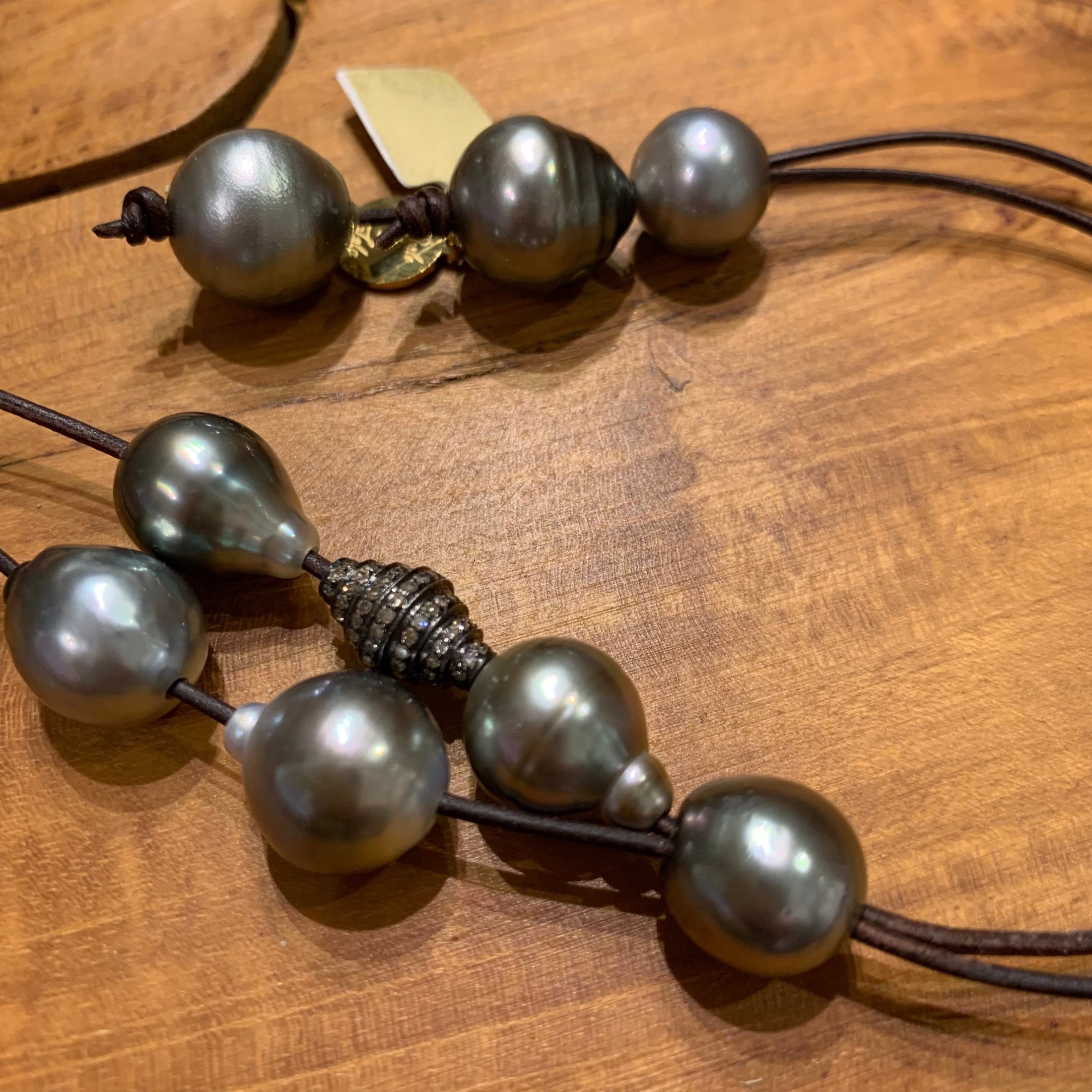Lustrous Tahitian and South Sea pearls, hand-strung on supple leather — a stunning fusion of elegance and edge. Effortlessly transitions from laid-back luxe to evening chic.