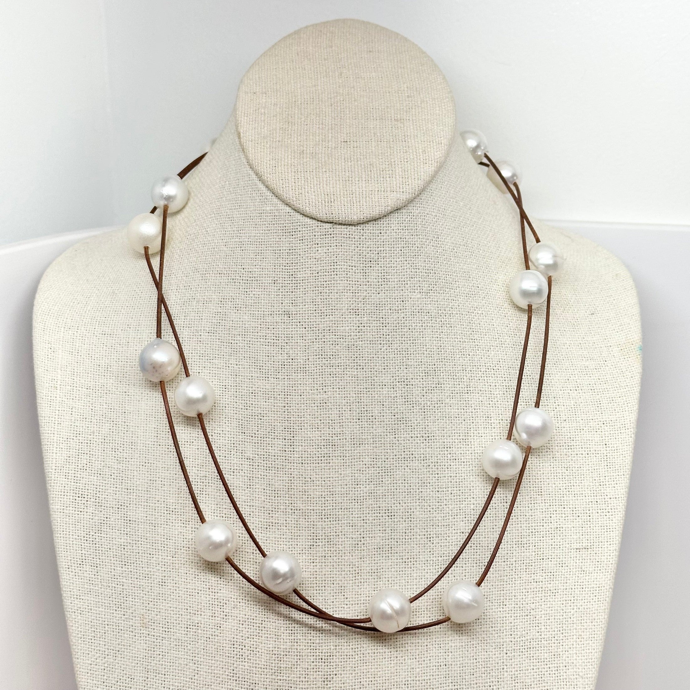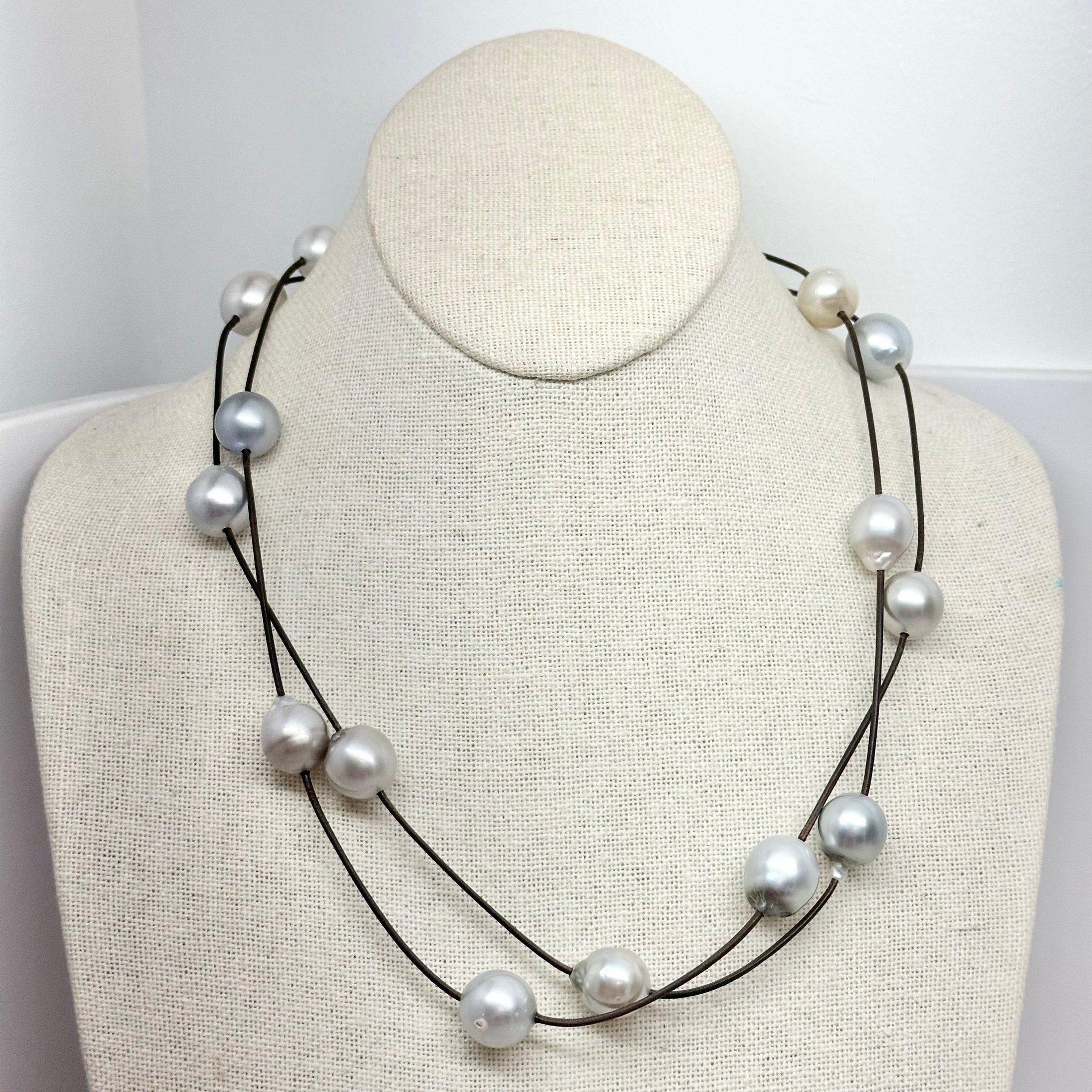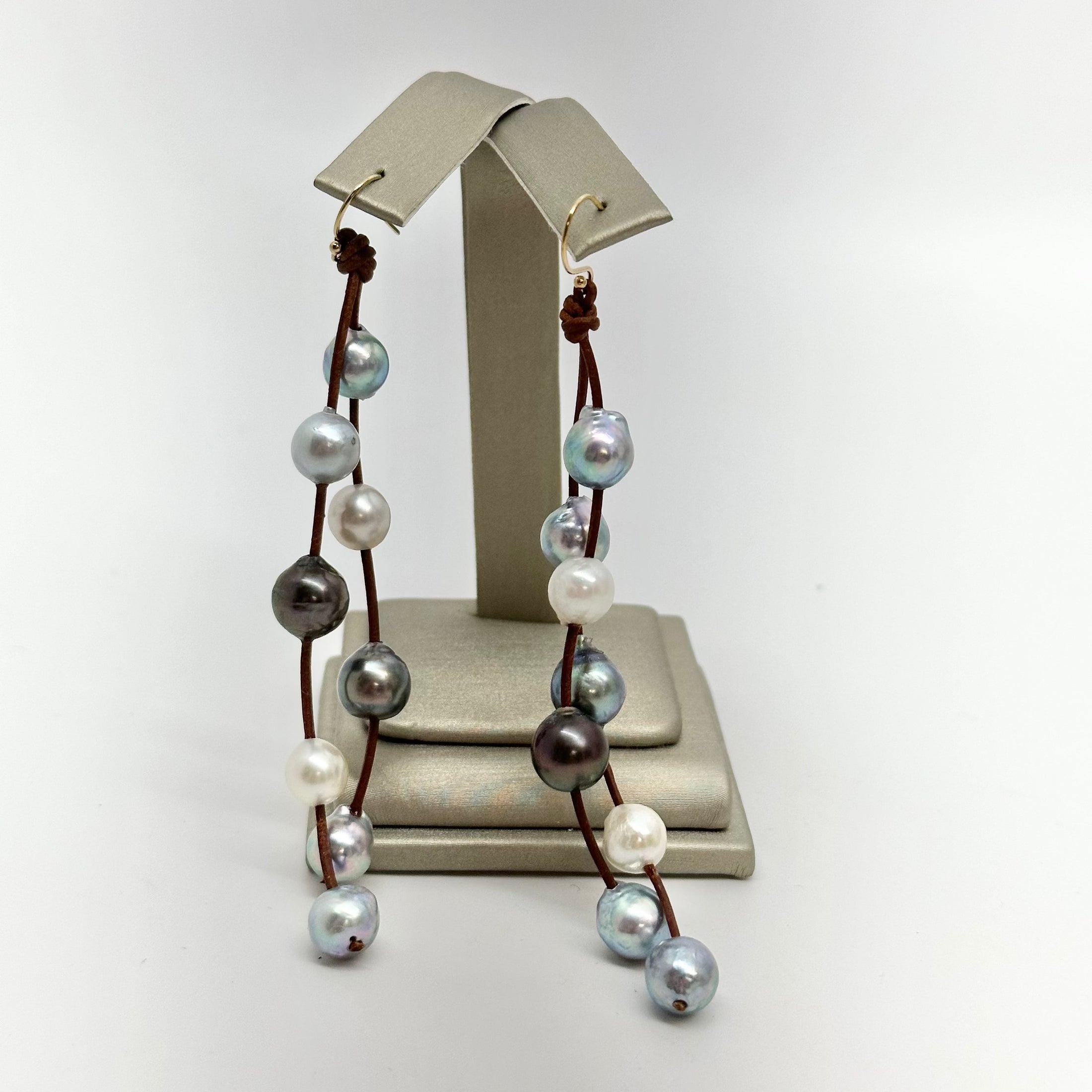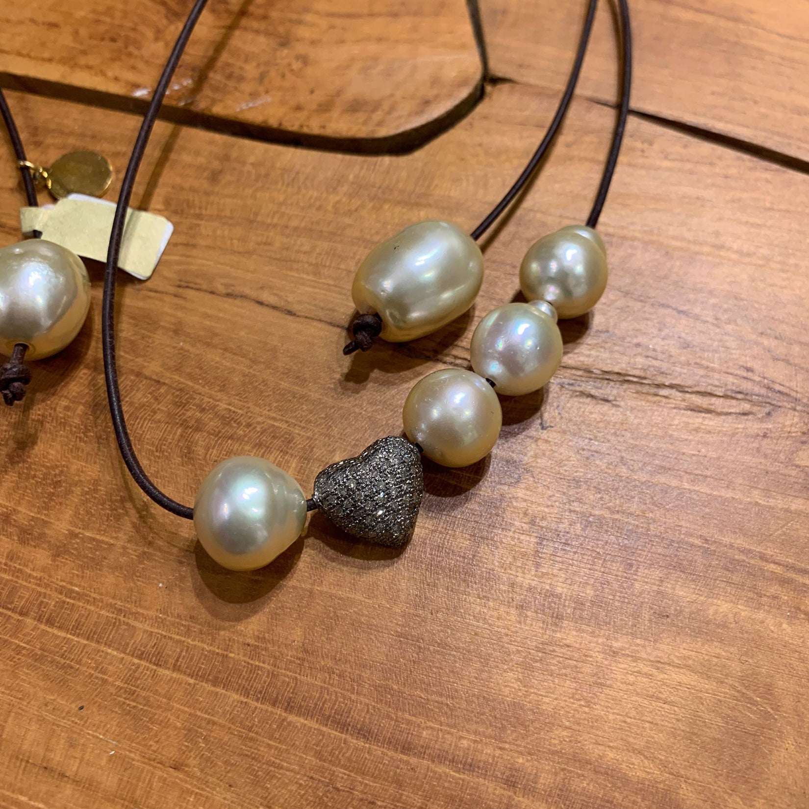 Lustrous Tahitian and South Sea pearls, hand-strung on supple leather — a stunning fusion of elegance and edge. Effortlessly transitions from laid-back luxe to evening chic.