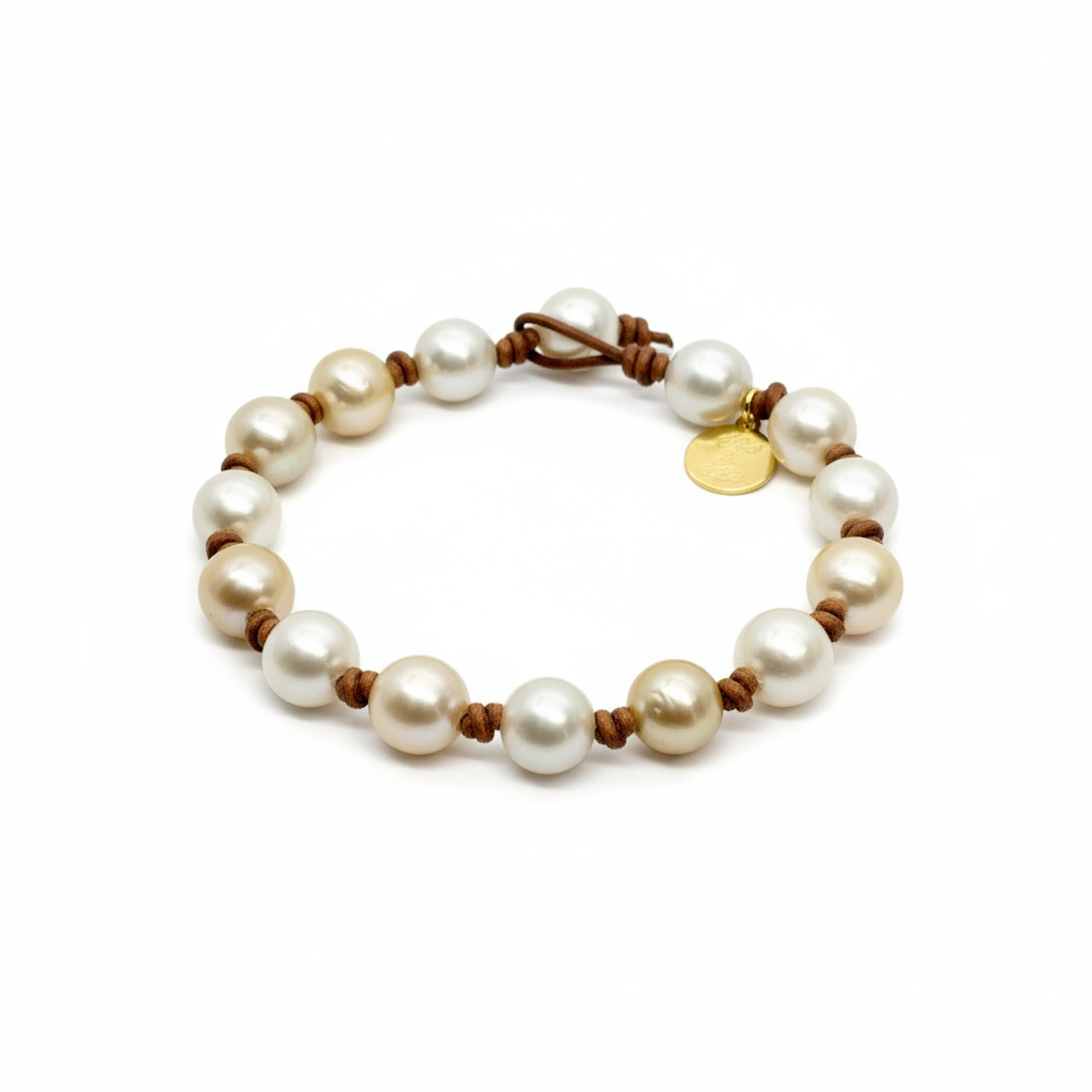 The Classic South Sea Pearl Bracelet with Knots | Tan | 8"