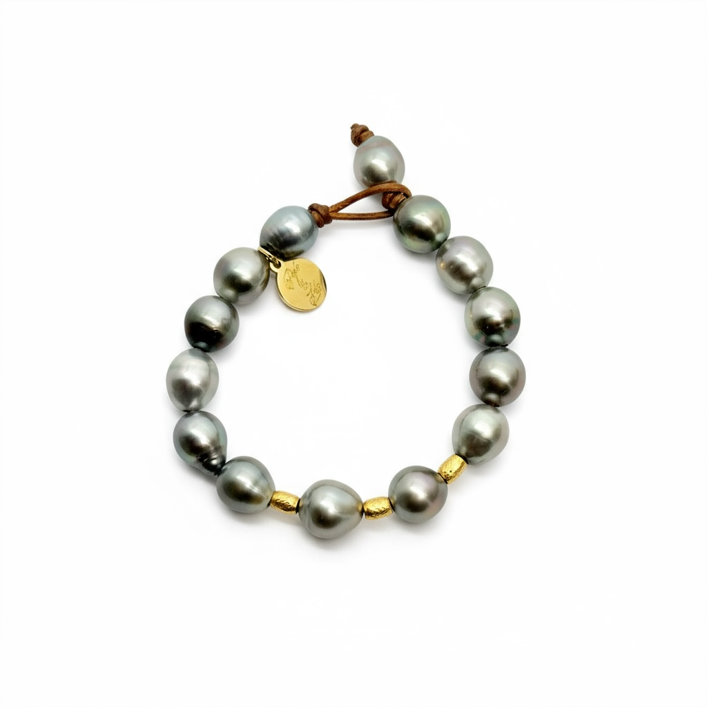Tahitian Pearl Bracelet with Gold Pebble | 8.5"