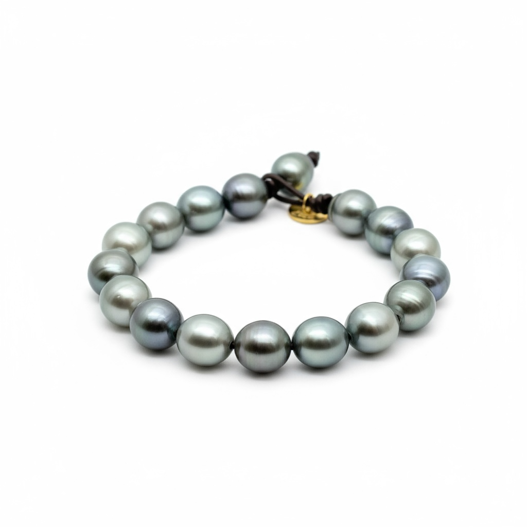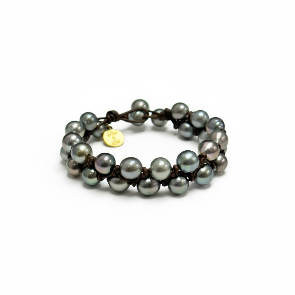 Lustrous Tahitian and South Sea pearls, hand-strung on supple leather — a stunning fusion of elegance and edge. Effortlessly transitions from laid-back luxe to evening chic.