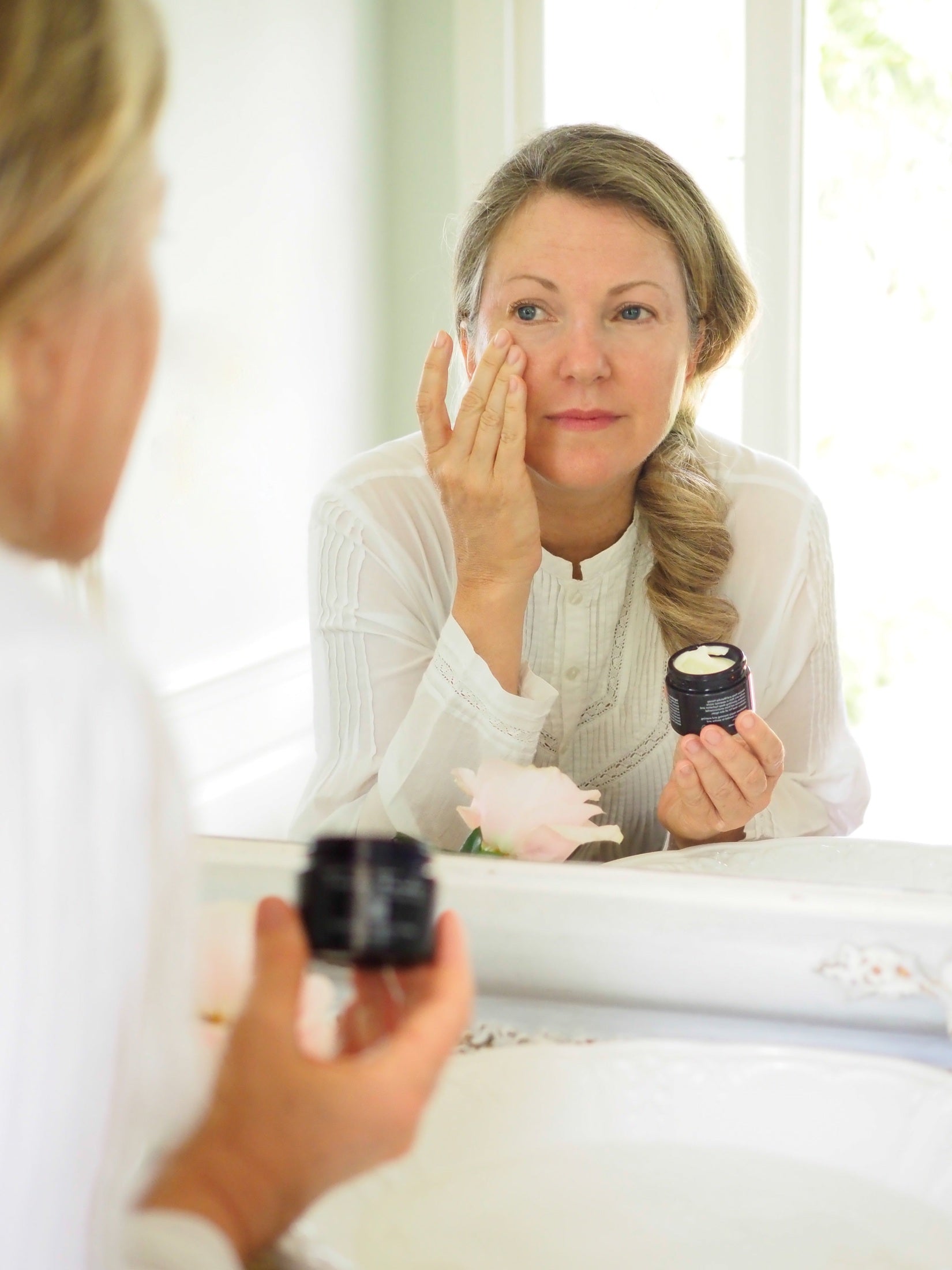 Celestial Rose Crème makes an ideal night cream, beautifully enveloping the skin in holistic care. The cream itself simply melts into the skin, and that quality of receiving aligns the potency of the formula with the body’s natural rhythms to restore the skin in the nighttime.