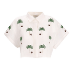 Discover the elegance of the Brigitte Double Palm Bondi Shirt by Benaras By Citrus. This shirt features a distinctive print design, adding a unique touch. With long sleeves, it is ideal for a sophisticated and contemporary style. Perfect for any occasion, this piece is a must-have in your wardrobe