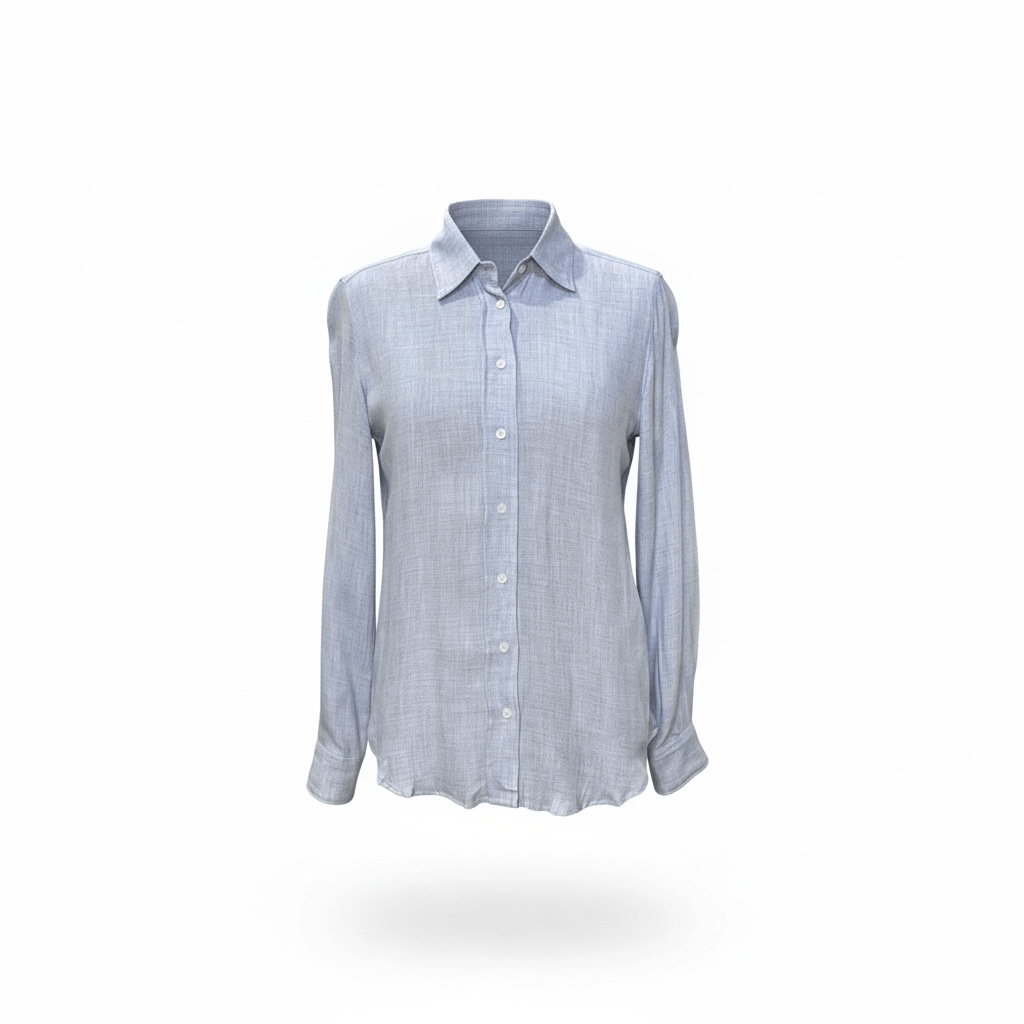 - Women's flowing shirt in mottled blue viscose and wool