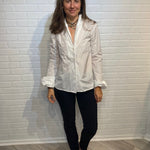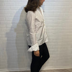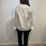 A lovely little favourite blouse! With its narrow cut, it’s particularly flattering for a petite figure. A small upright shawl collar defines the look; the long cuffs with a specially laid pleat alignment provide for added character.
