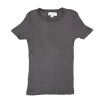 Crafted from a soft cotton-modal blend, this fitted tee features delicate ribbed pointelle details for subtle texture. The crew neckline is accented with a scalloped edge, complementing the short sleeves for a refined everyday look.