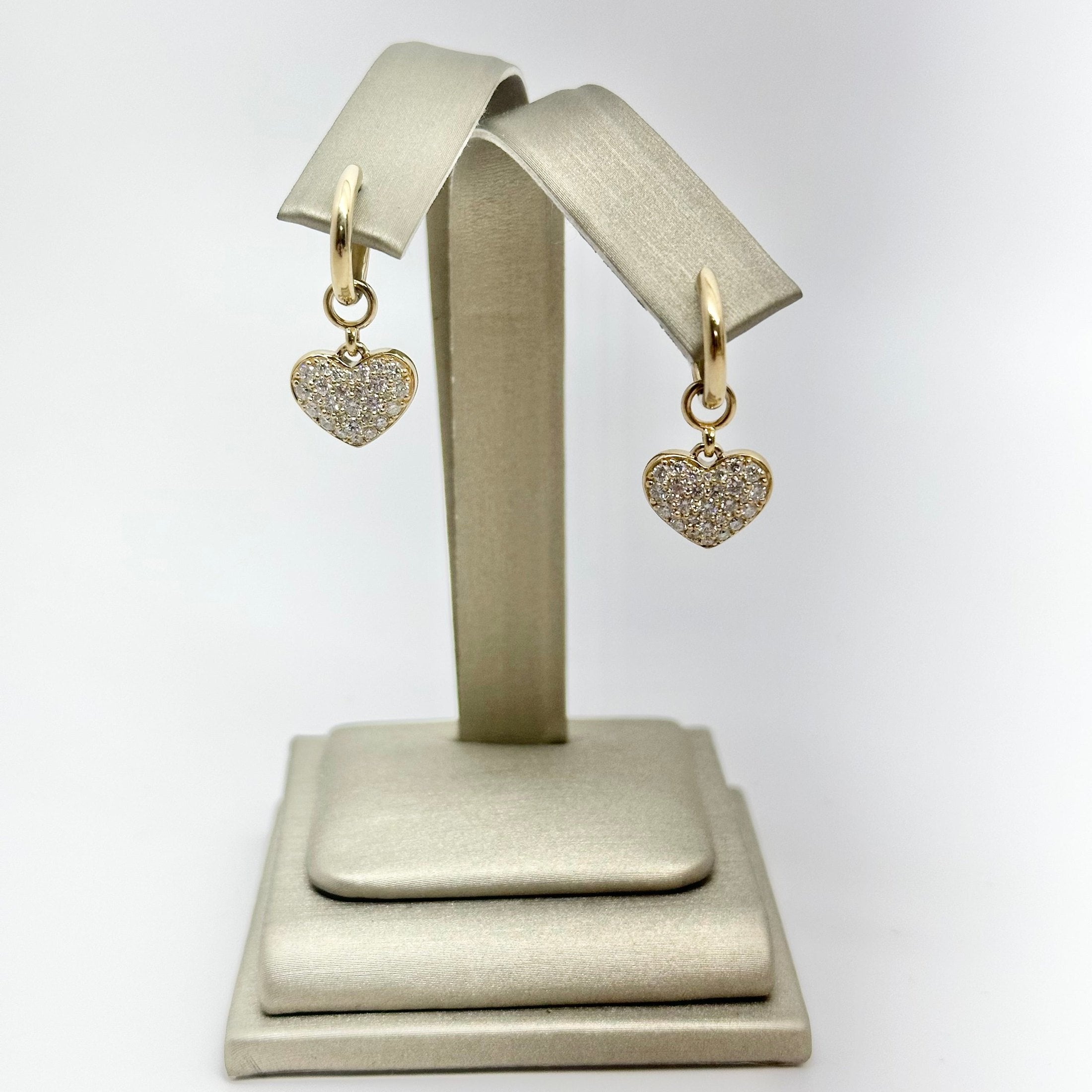 14K Y/G Huggies with a Jacket Earring. Mini Pave Diamond Heart Jacket.