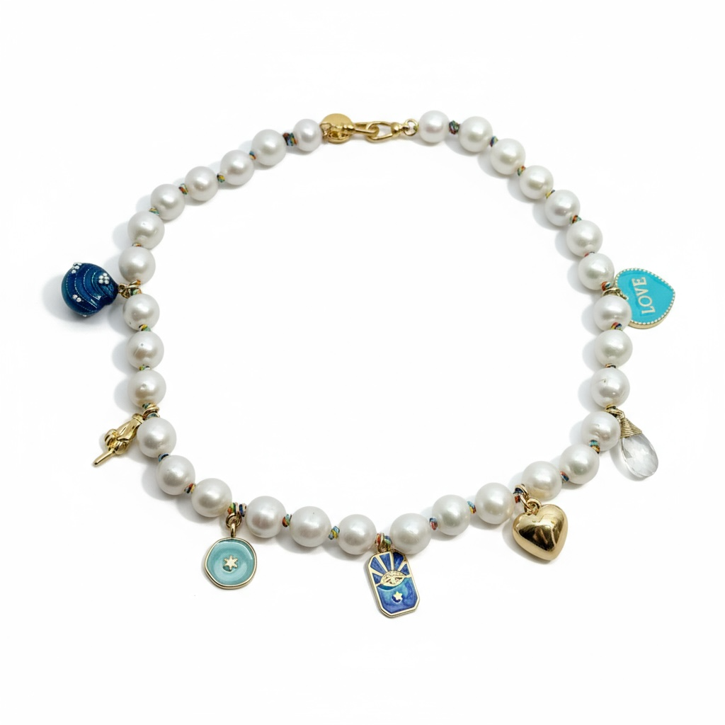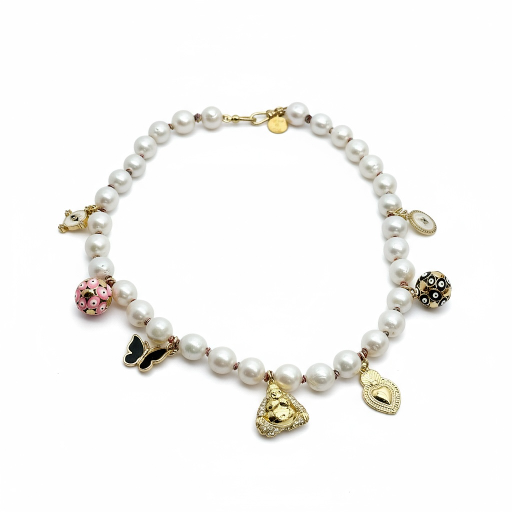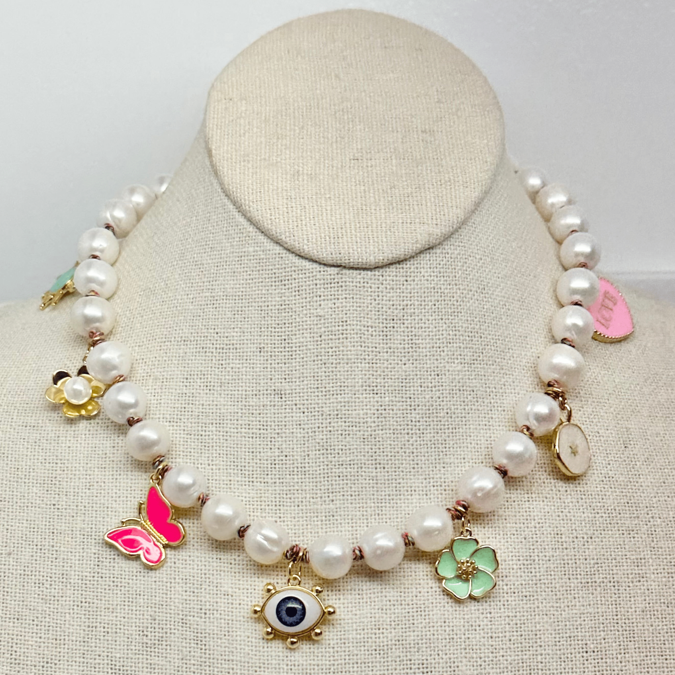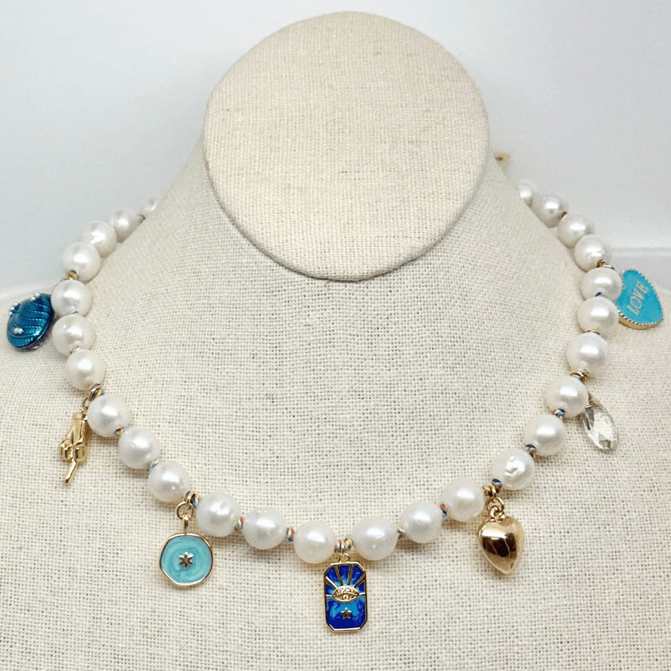Edison Pearl Choker w/ Charms | Evil Eye | A