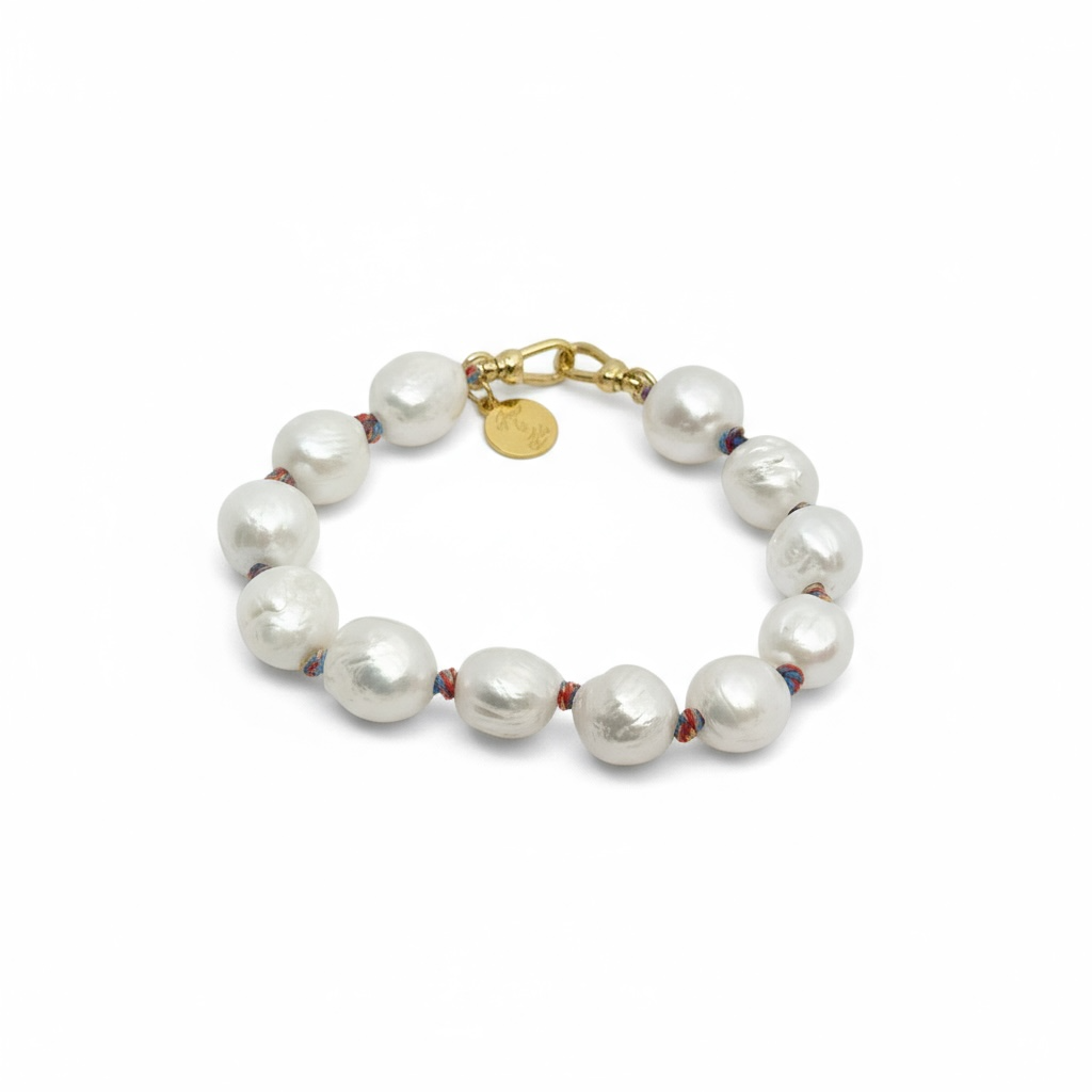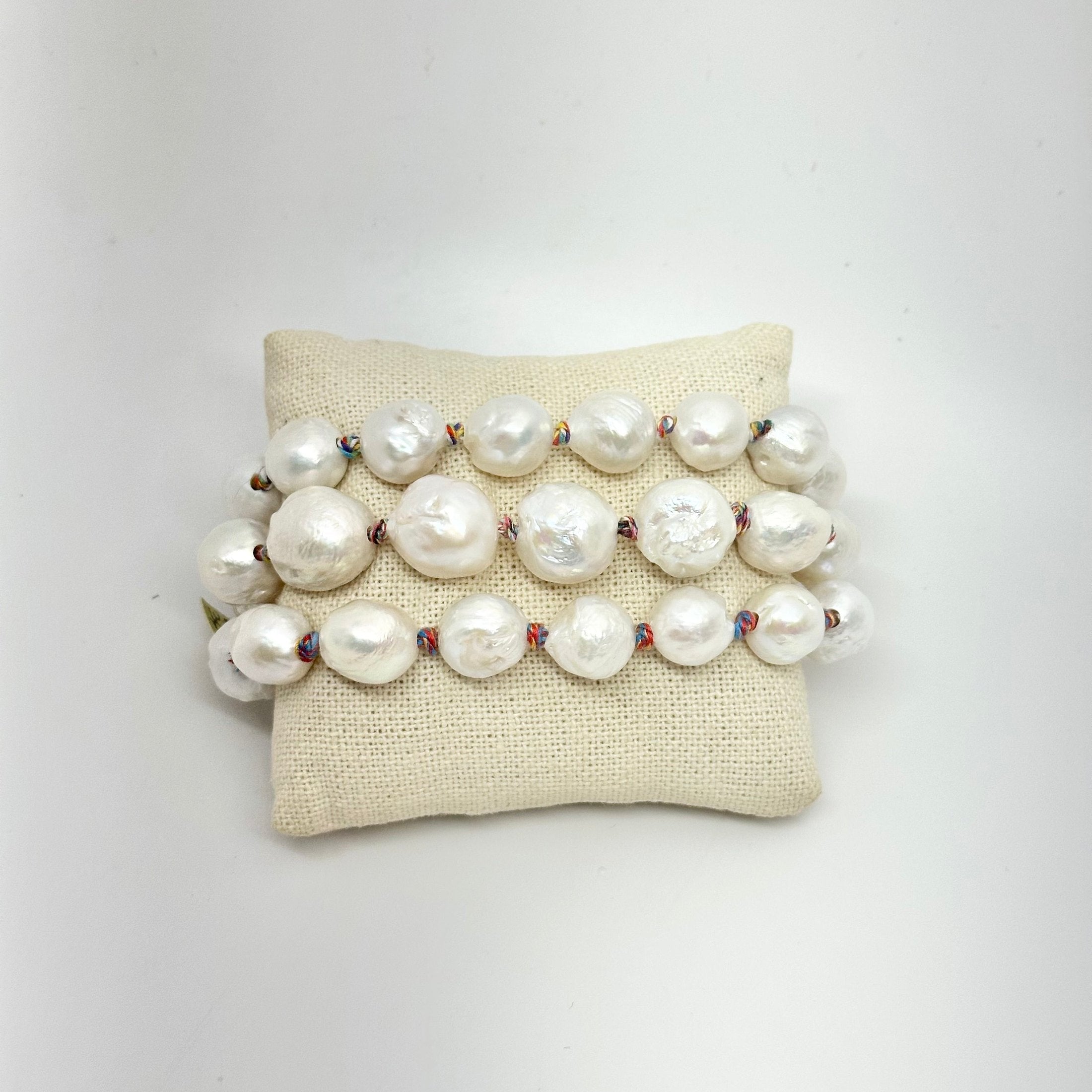 Triple Wrap Edison Pearls on Metallic Cord Bracelet