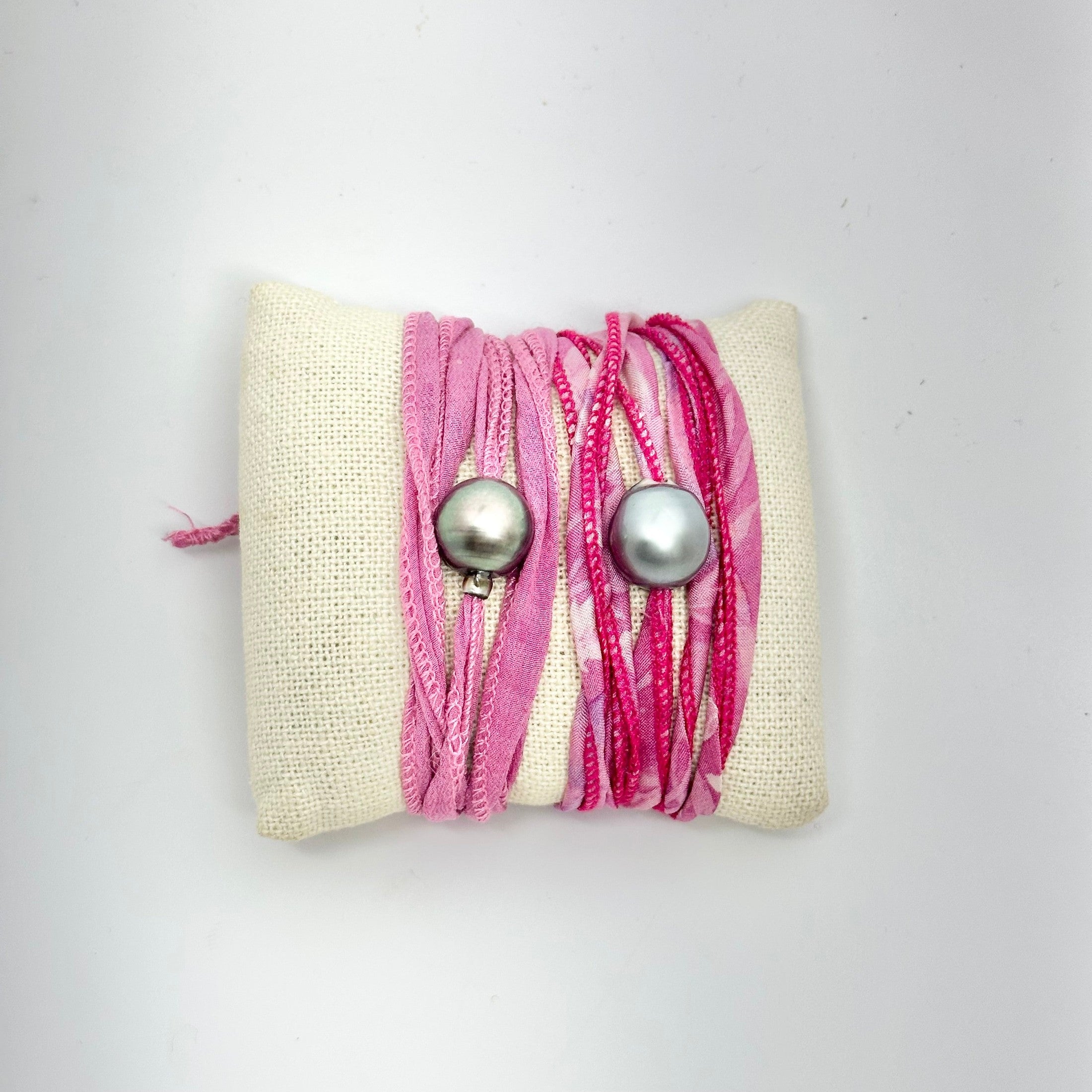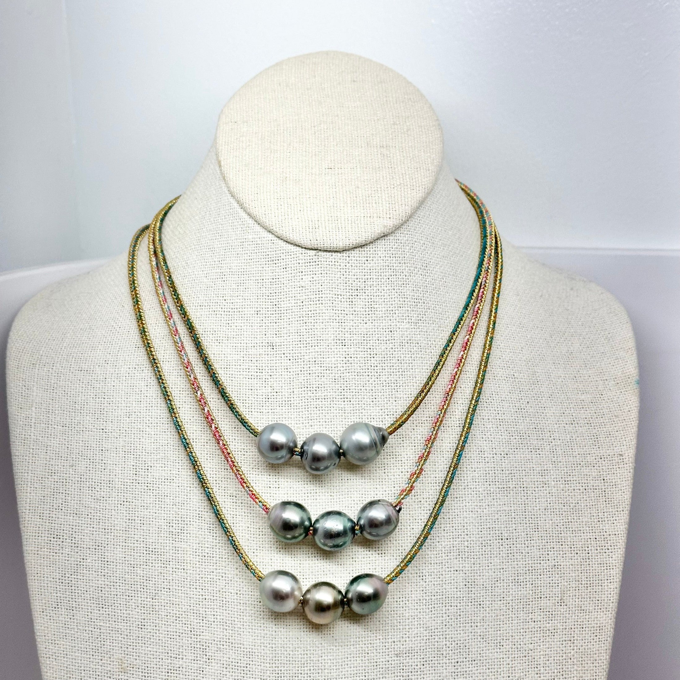 Triple Wrap Tahitian Pearls on Metallic Cord Bracelet