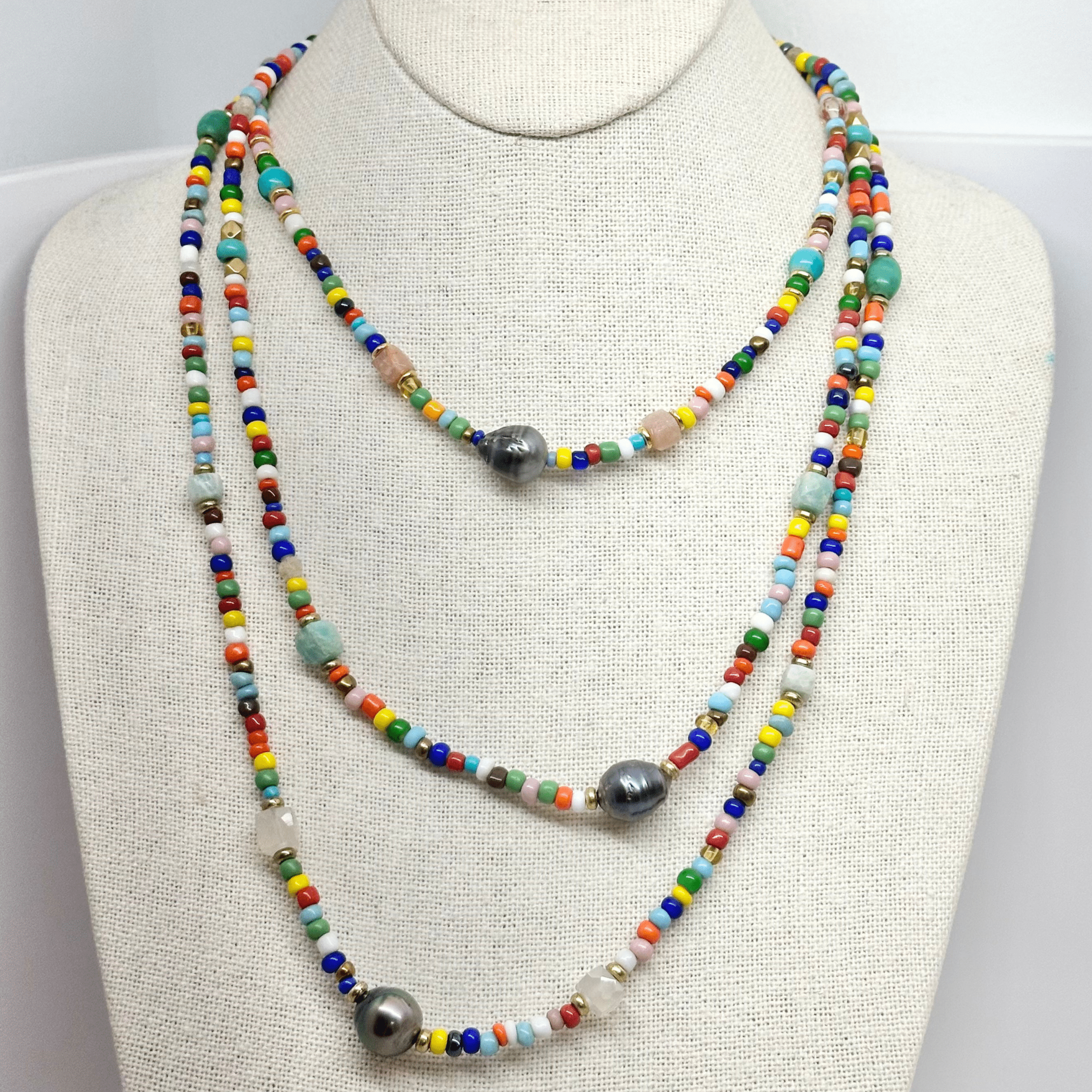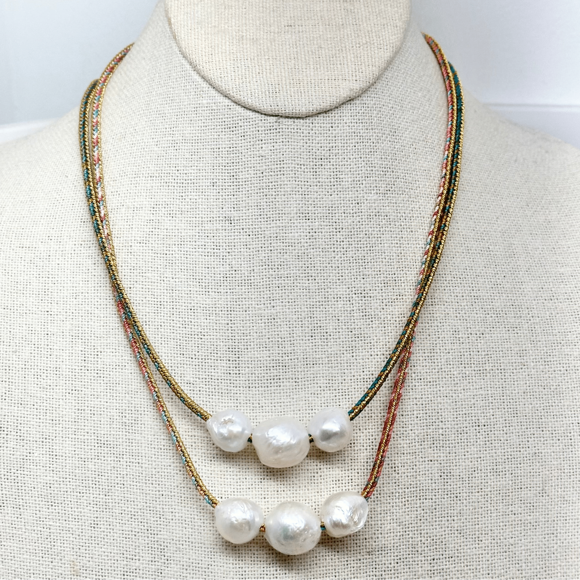 Round Freshwater Pearls on Colorful Cord Necklace | 20"