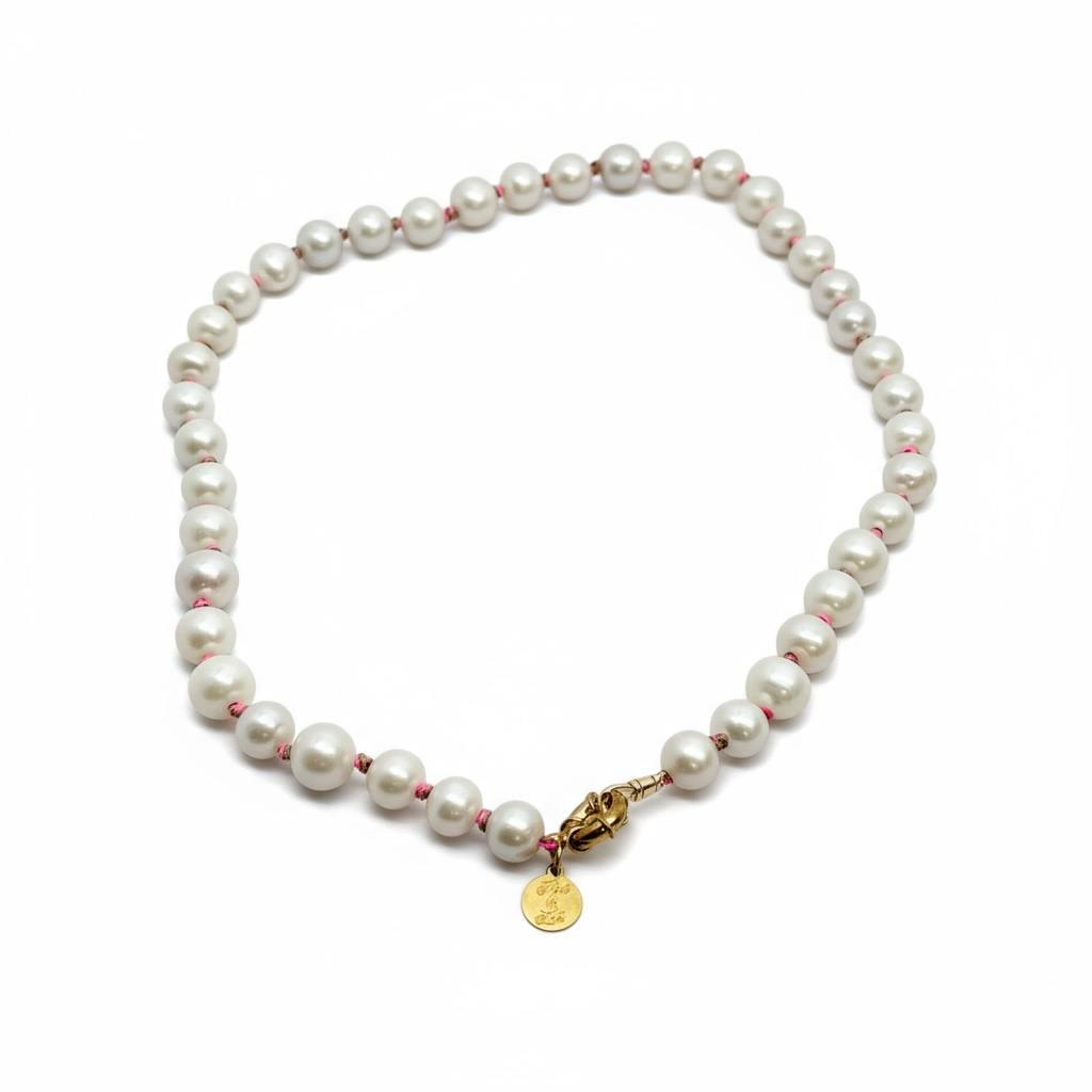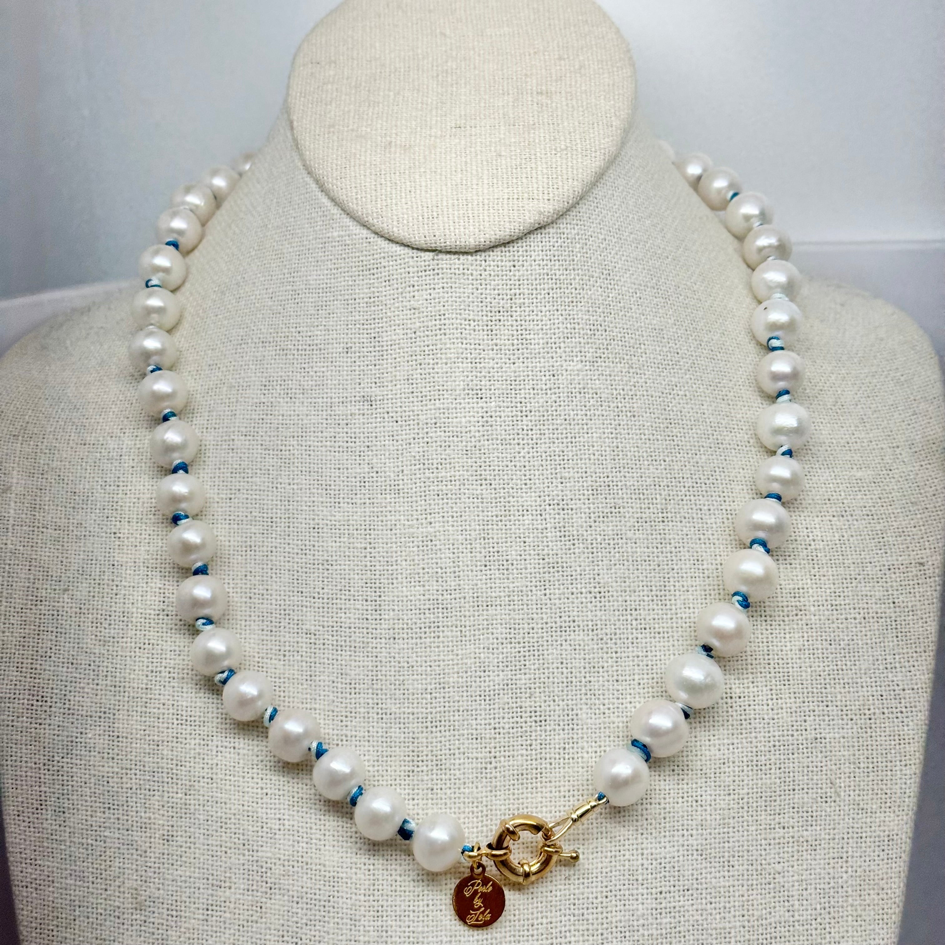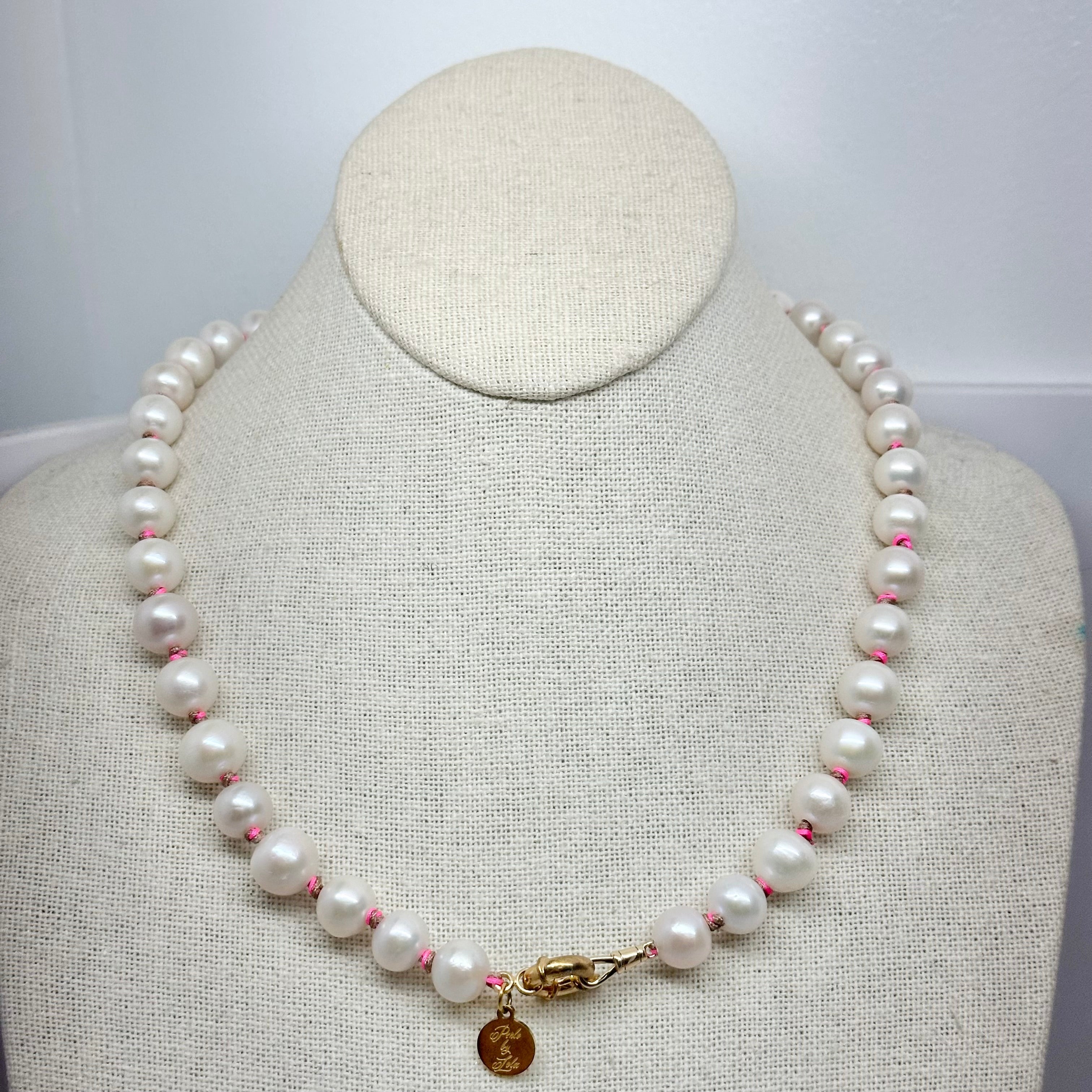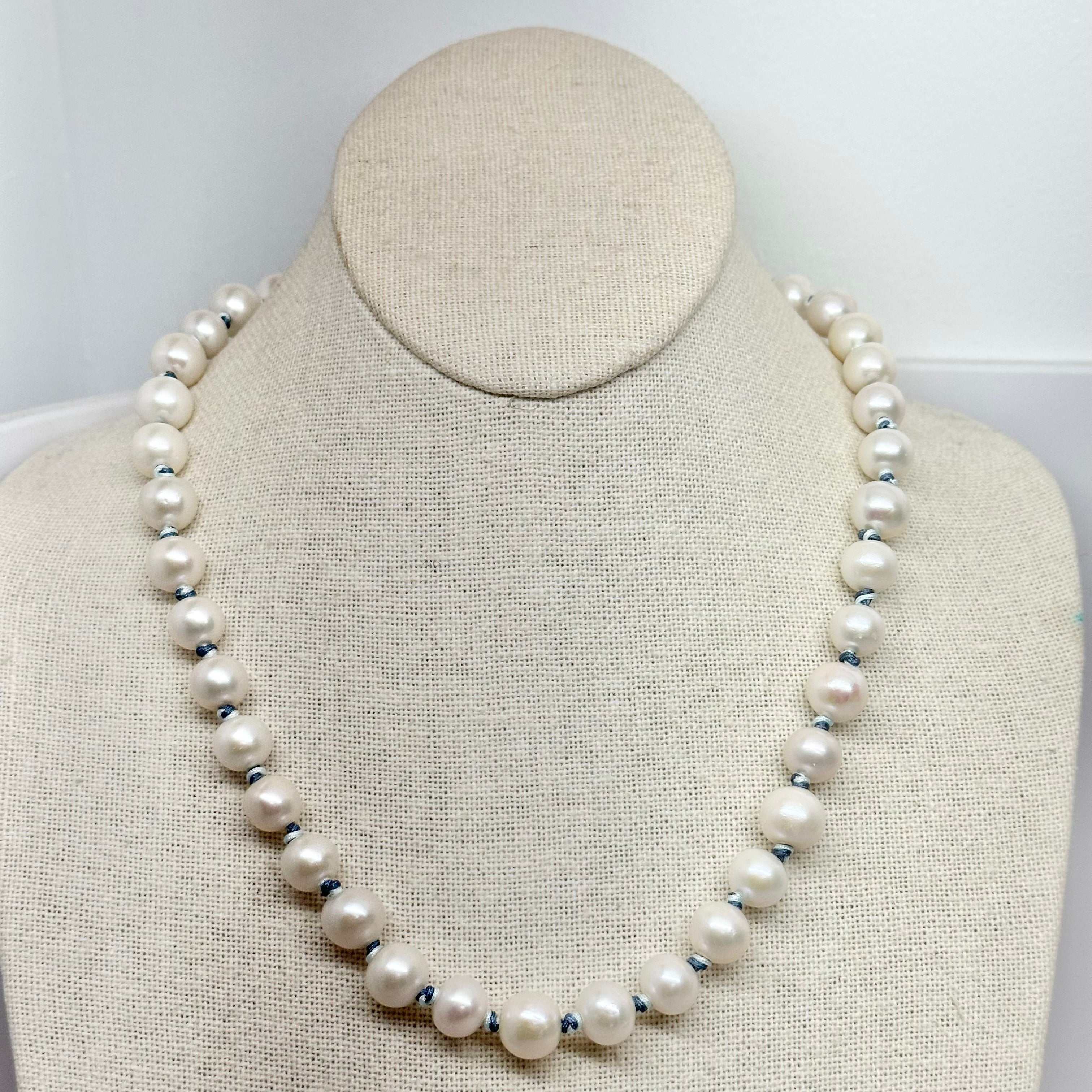 20" necklace with Round Freshwater Pearls on 2 colors of cord and clasp.