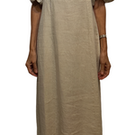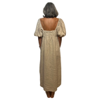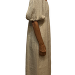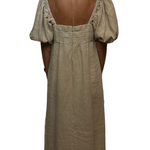 Made from lightweight woven linen, this midi dress features a square neckline and voluminous puff sleeves for a timeless silhouette. Elastic details on the shoulders, cuffs, and yoke add texture, while the hidden rear zipper ensures effortless wear.