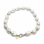 17" Choker with medium sized Baroque Freshwater Pearls with Silver Pave Diamond clasp & loop on multi-color thread/cord.