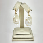 Large White baroque freshwater pearl on a 14k gold huggy -- very comfortable and surprisingly not heavy. (May or may not come with the gold bits on the end ... depends on pearls).
