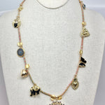 24” charm necklace w/ Evil Eye Pendant on multicolored metallic cord.