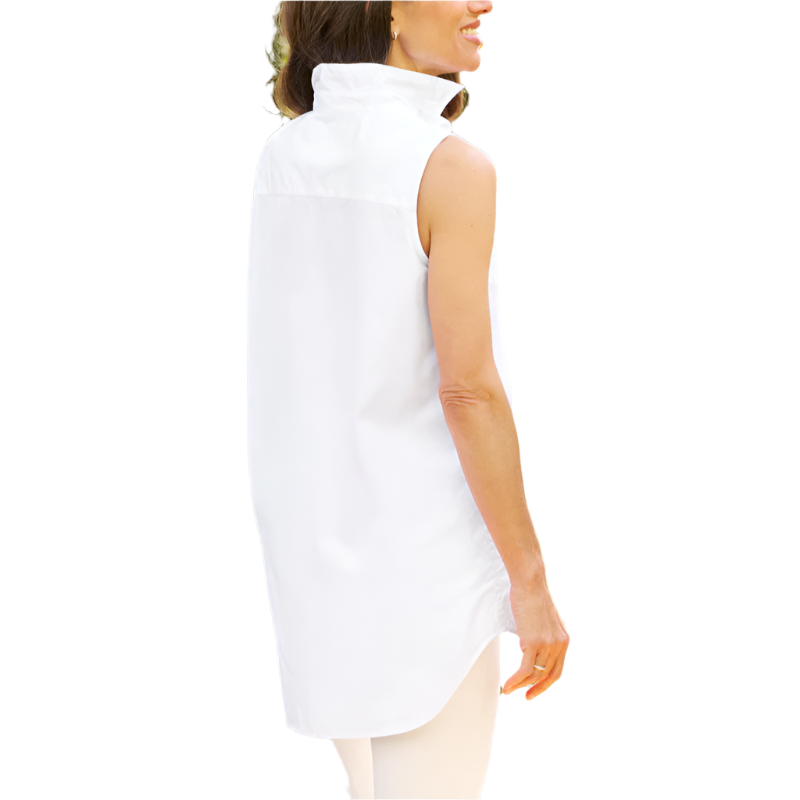 Finley will be your layering hero! This sleeveless style solves the “what do I wear under my sweater?” issue, giving you all the look of a button-up without the bulk! Pop Finley under sweater to create a beautifully layered, forever classic look that covers your bum.