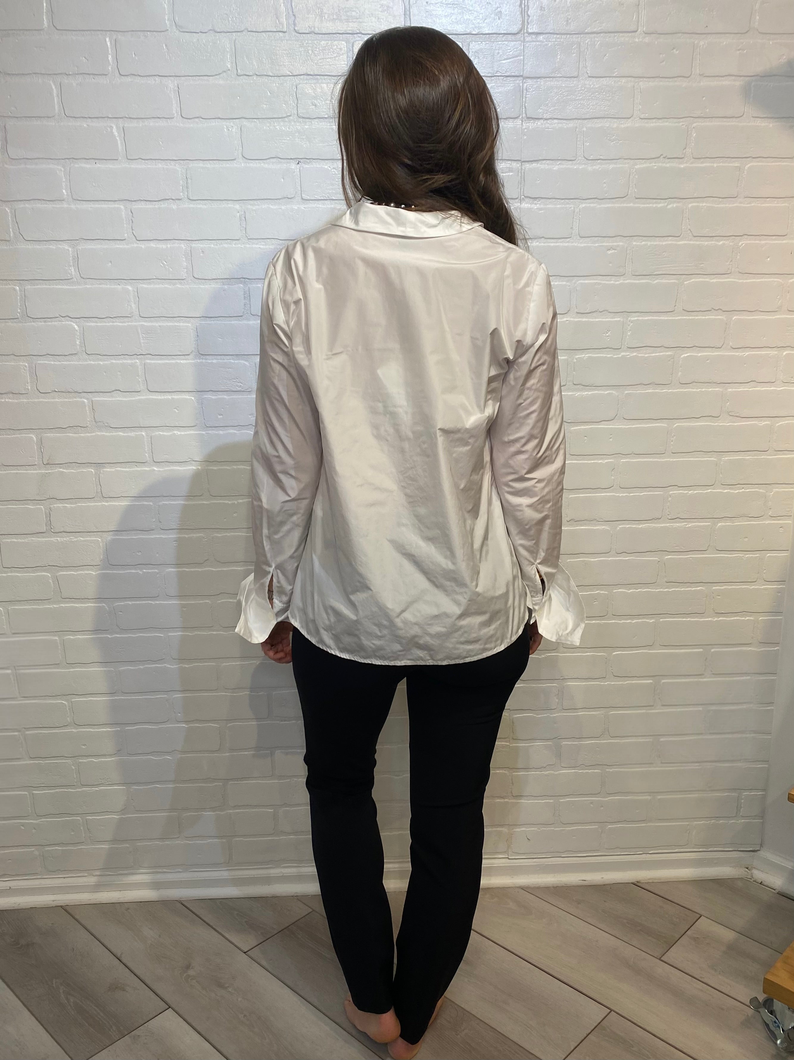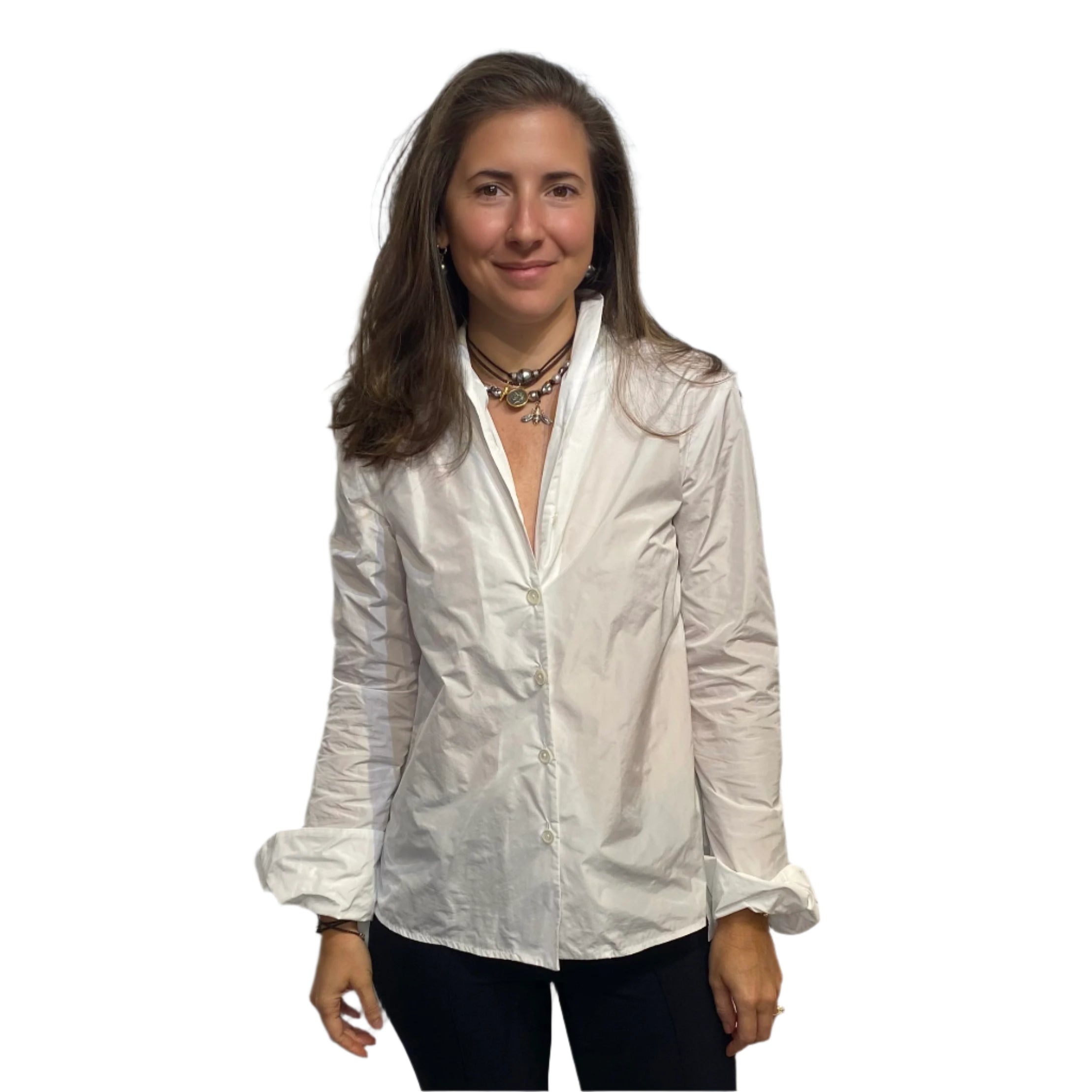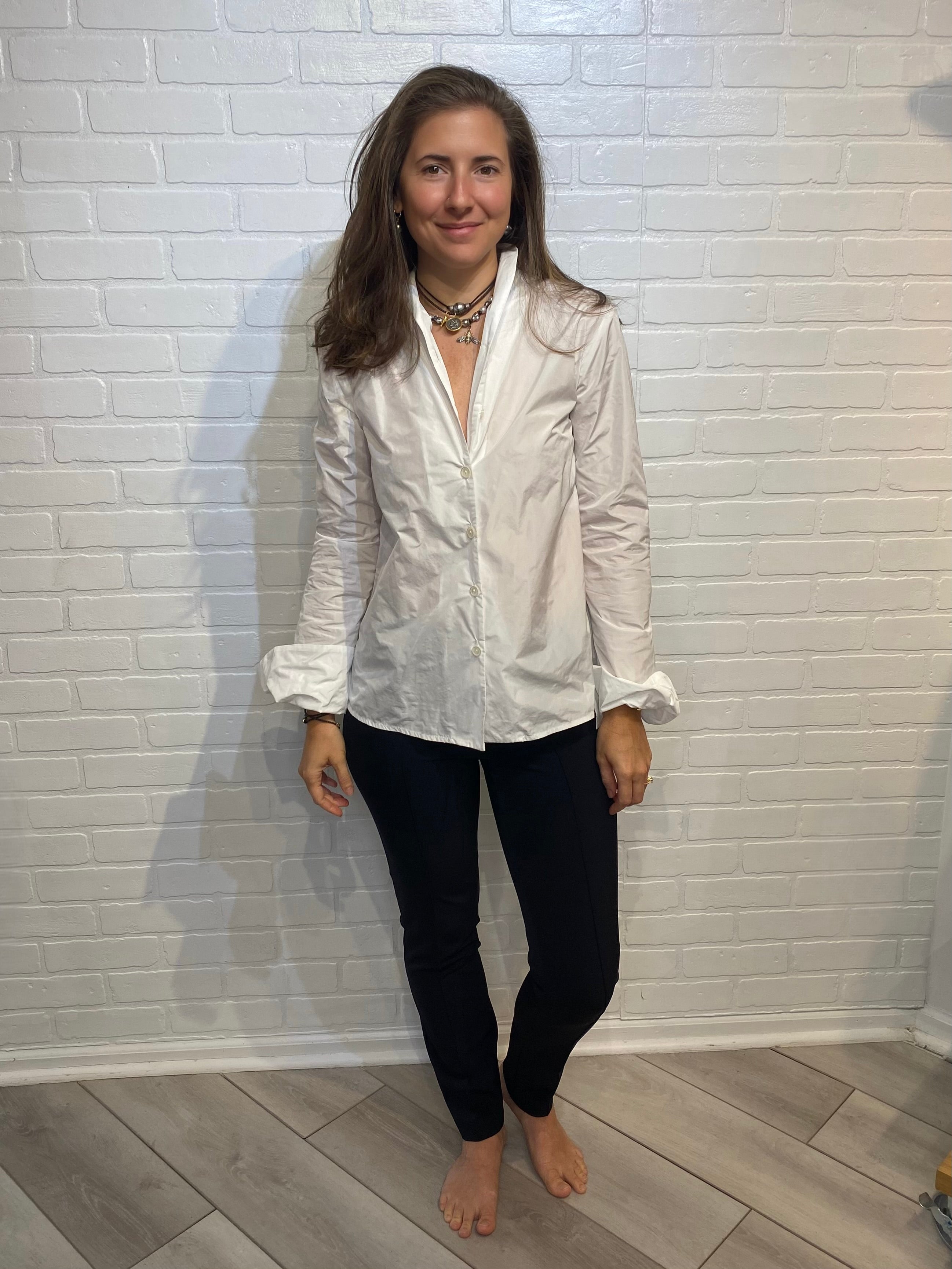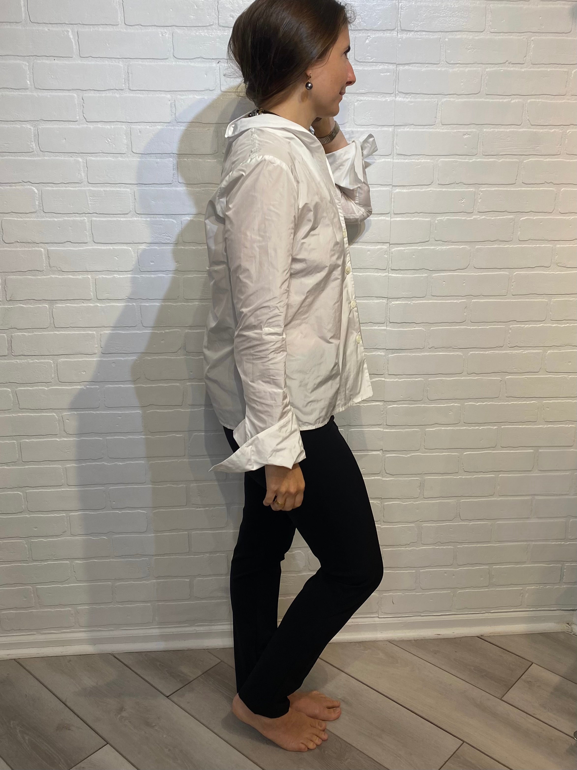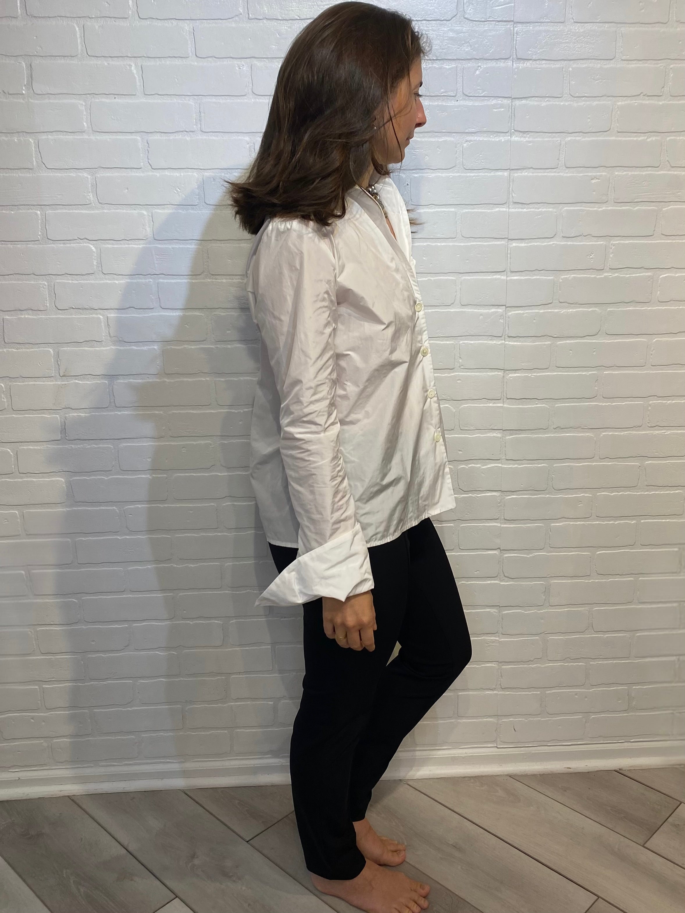 A lovely little favourite blouse! With its narrow cut, it’s particularly flattering for a petite figure. A small upright shawl collar defines the look; the long cuffs with a specially laid pleat alignment provide for added character.